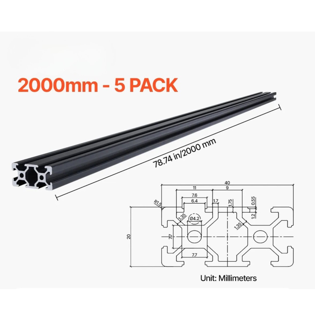 Alumínium profil készlet 5 db 2000 mm T-nyílású 2040 alumínium profil eloxált lineáris sín
