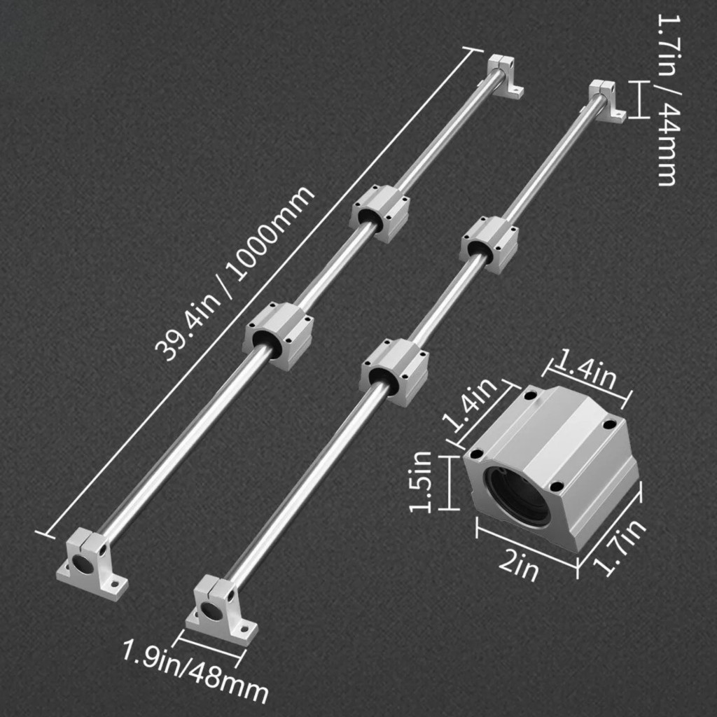A 16 mm átmérőjű edzett tengelyek, a különálló síntartó bakok, valamint a zárt kialakítású SC16 golyóscsapágyas kocsik garantálják a stabil, rezgésmentes és halk működést.