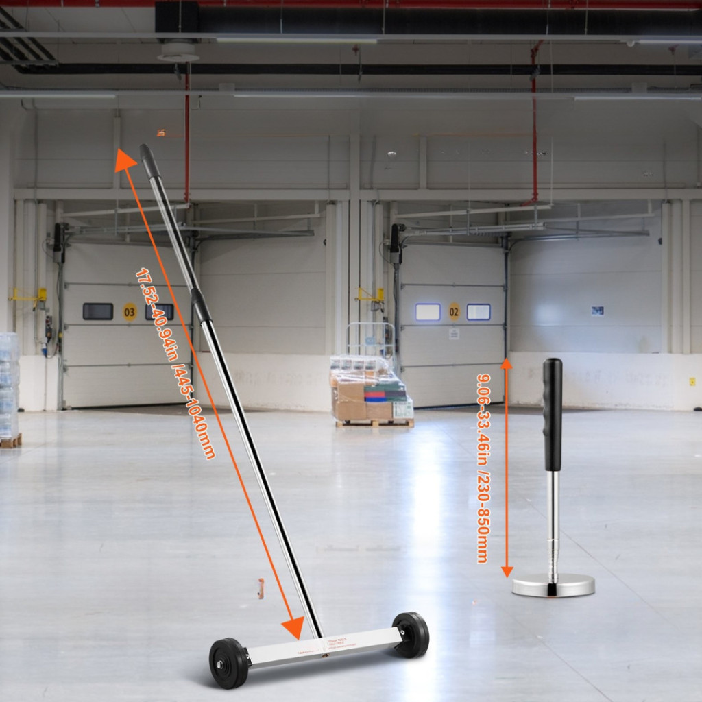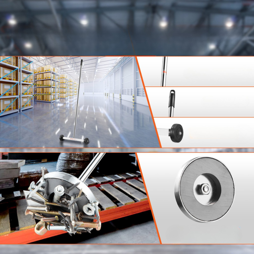 A mágneses seprőgép kiváló választás műhelyek, garázsok, építkezések és egyéb munkaterületek számára, ahol gyors és hatékony fémhulladék-eltávolításra van szükség. A beépített nagy teljesítményű mágnes akár 3,6 kg fémtörmeléket képes összegyűjteni egyetlen mozdulattal. Használatával biztonságosan és könnyedén eltávolíthatók a szegek, csavarok és fémforgácsok, csökkentve a balesetek kockázatát.