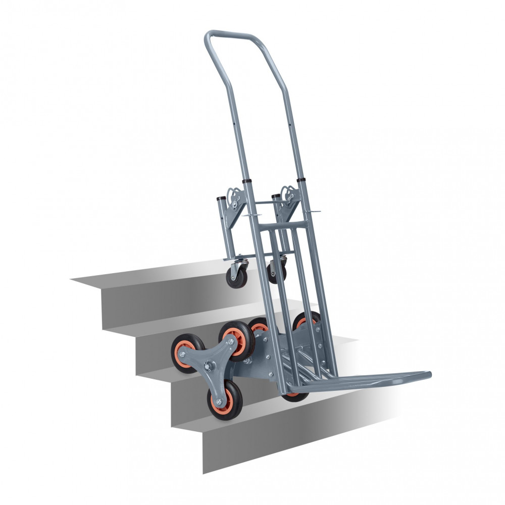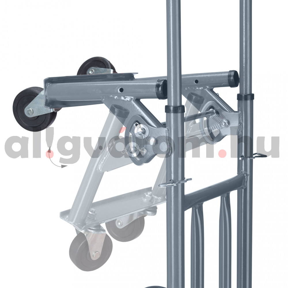 Legyen szó bútorokról, kerti növényekről, italos ládákról vagy terjedelmes nehéz rakományokról, ez a többfunkciós molnárkocsi ideális szállítóeszköz költöztetésekhez vagy rakodási munkákhoz. A csillag alakú keménygumi kerekeknek köszönhetően a lépcsők nem jelentenek akadályt a kézikocsi számára. Különlegessége a többfunkcióval rendelkező lépcsőjáró kocsi, amely igény szerint nagy rakfelületű platós kocsivá alakítható. Összecsukott állapotban a kézikocsi helytakarékosan tárolható és magával vihető.