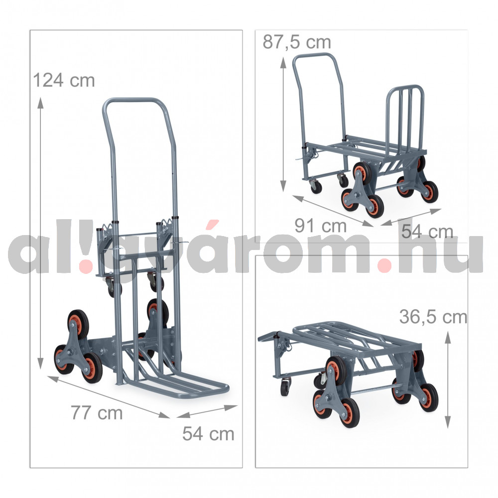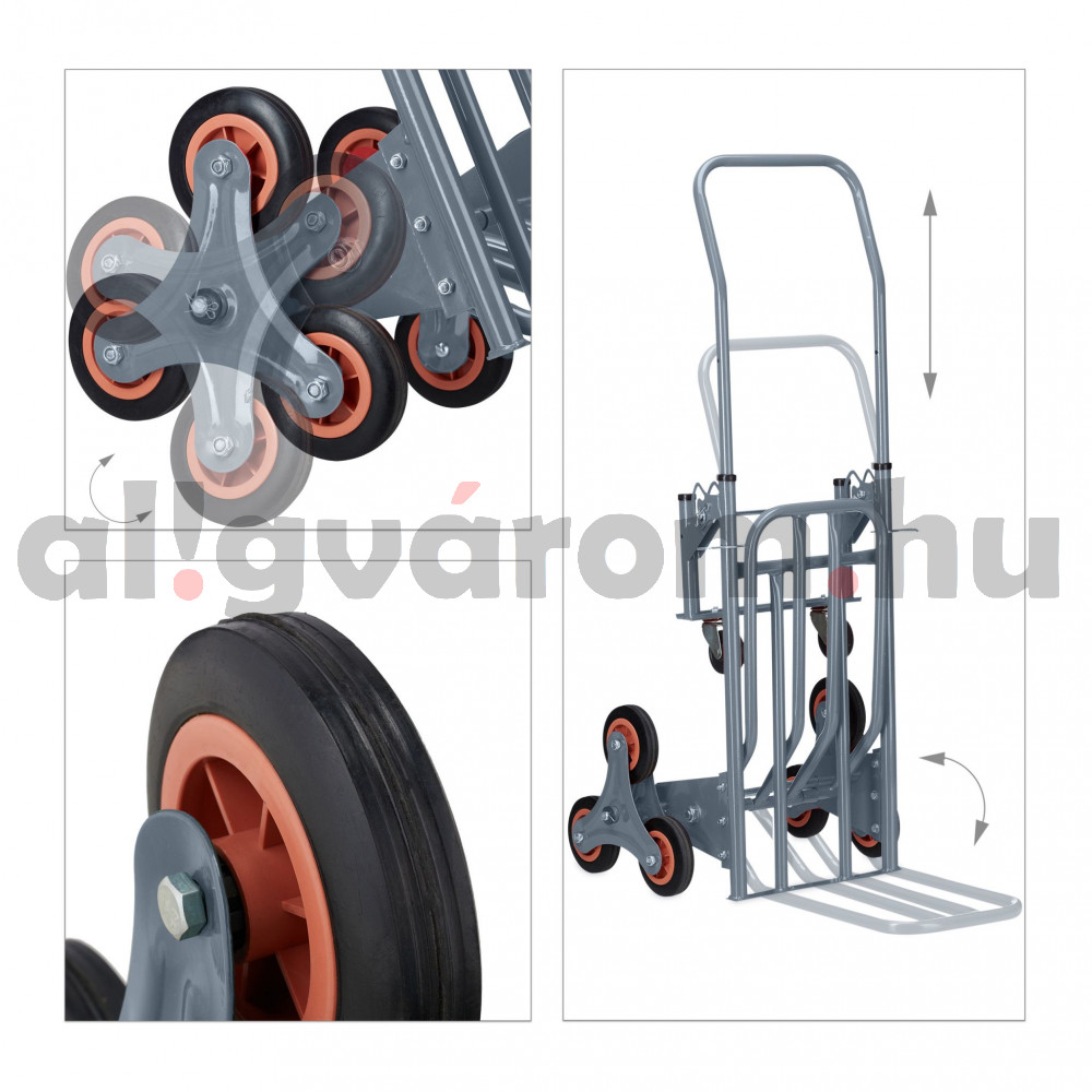 Lépcsőjáró molnárkocsi átalakítható kézikocsi 150 kg teherbírás szürke összecsukható szállítókocsi