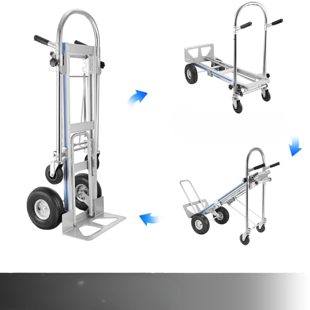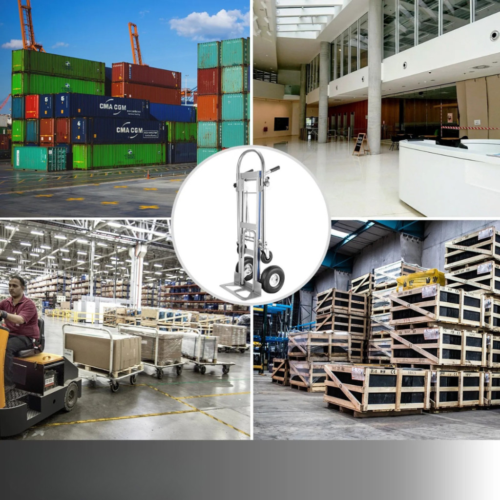 A 3 az 1-ben alumínium kézikocsi egy strapabíró, sokoldalúan használható szállítókocsi, amely ideális választás mind háztartási, mind ipari feladatokhoz. Könnyű alumínium szerkezetének köszönhetően egyszerűen mozgatható, mégis rendkívül erős és tartós, így hosszú távon is megbízható társ lesz a nehéz terhek szállításában.