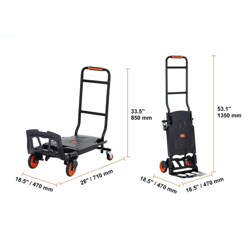 A 2 az 1-ben összecsukható kézikocsi ideális választás mindazoknak, akiknek megbízható és sokoldalú szállítóeszközre van szükségük mind otthoni, mind ipari felhasználásra. Ez a robusztus, mégis könnyű alumínium és szénacél vázas kézikocsi akár 136 kg terhelést is könnyedén elbír, így tökéletes társ a mindennapi szállítási feladatokhoz.