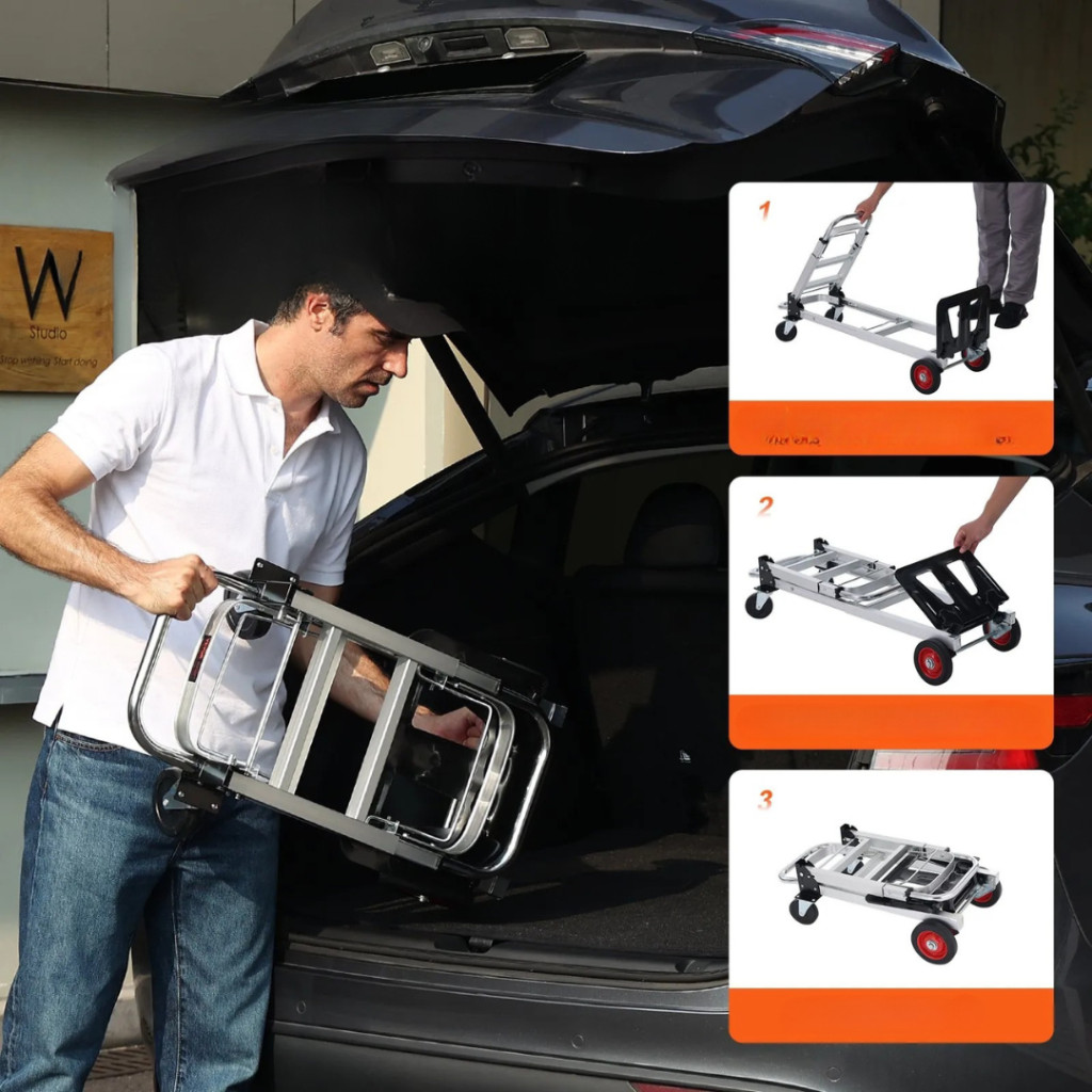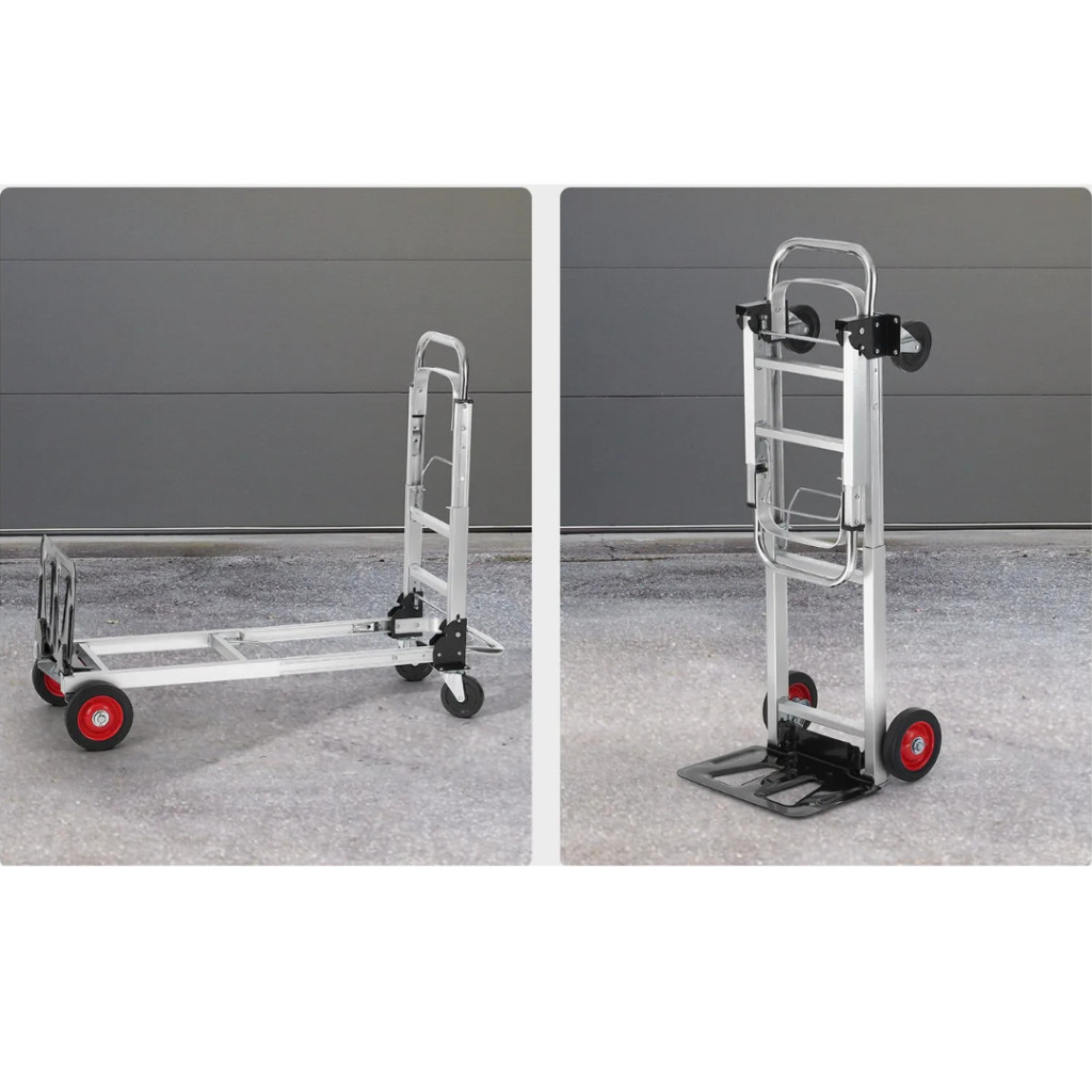 A mindennapi munka vagy a háztartási feladatok során gyakran előfordul, hogy nehéz tárgyakat kell mozgatni. A 2 az 1-ben összecsukható kézikocsi ebben nyújt nélkülözhetetlen segítséget: strapabíró alumínium–acél szerkezetének és sokoldalú kialakításának köszönhetően ideális választás otthonra, irodába, raktárba vagy akár építkezésre is.