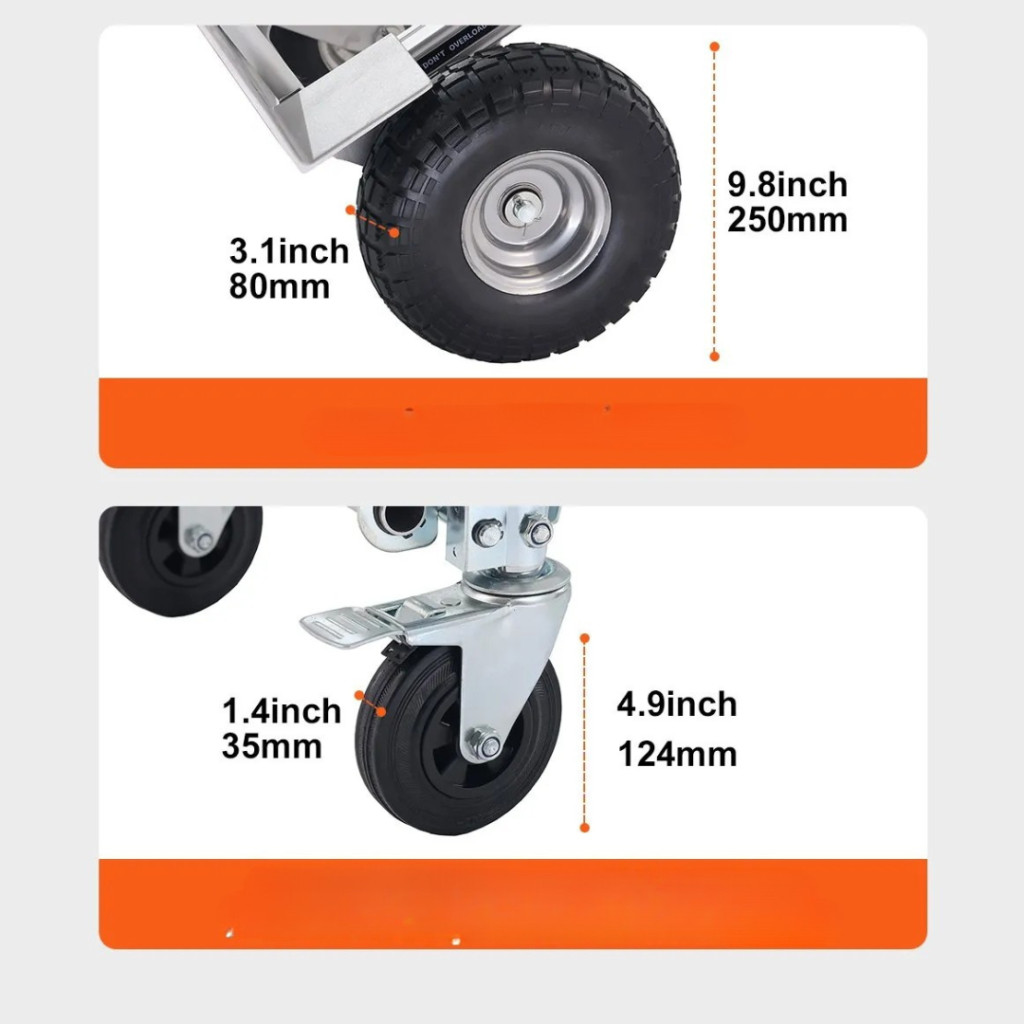 4 az 1-ben Összecsukható molnárkocsi 454 kg teherbírással, alumíniumötvözet szénacél vázas kézikocsi