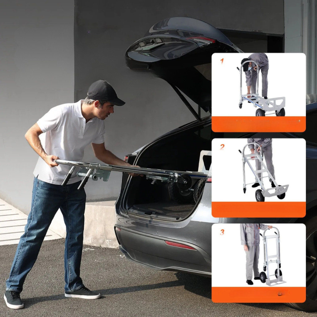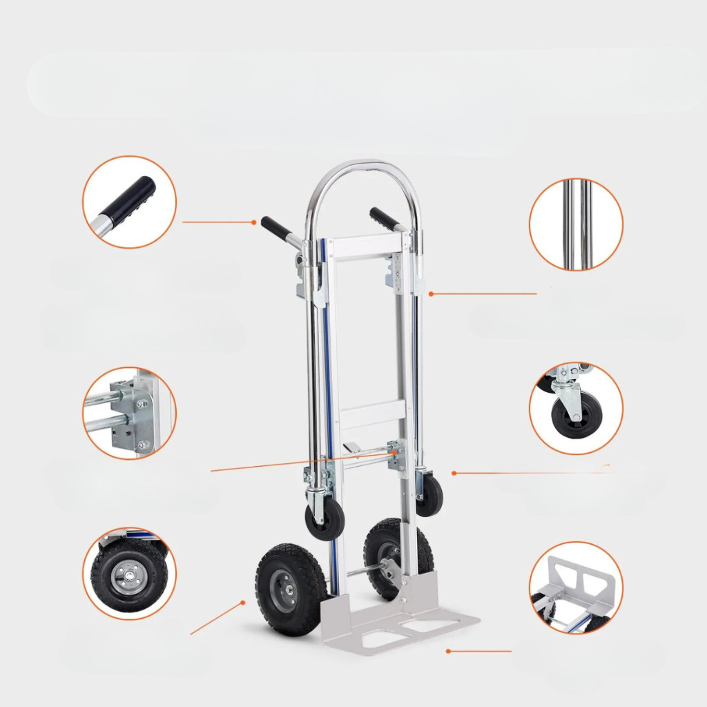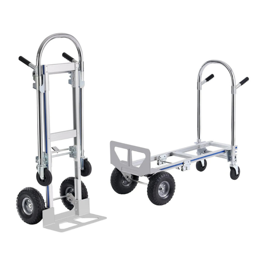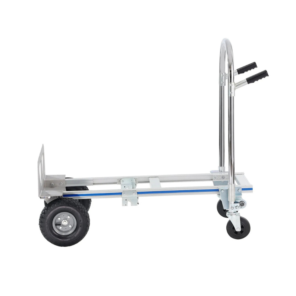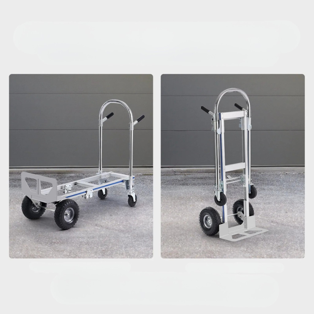 A 2 az 1-ben összecsukható kézikocsi tökéletes társ minden szállítási és rakodási feladathoz. Strapabíró alumíniumötvözet és szénacél váza kiemelkedő erősséget biztosít, miközben könnyű és könnyen manőverezhető marad. Akár 363 kg-ig platformkocsiként, akár 249 kg-ig kézikocsiként terhelhető, így ideális otthoni, ipari és kereskedelmi felhasználásra egyaránt.