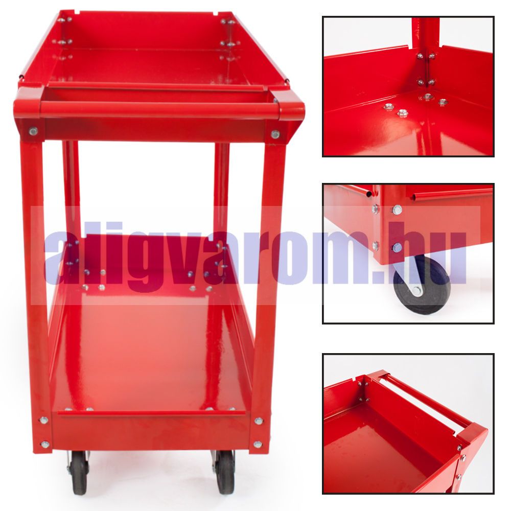Műhelykocsi 2 szintes szerszámkocsi 100 kg teherbírással önbeálló kerékkel