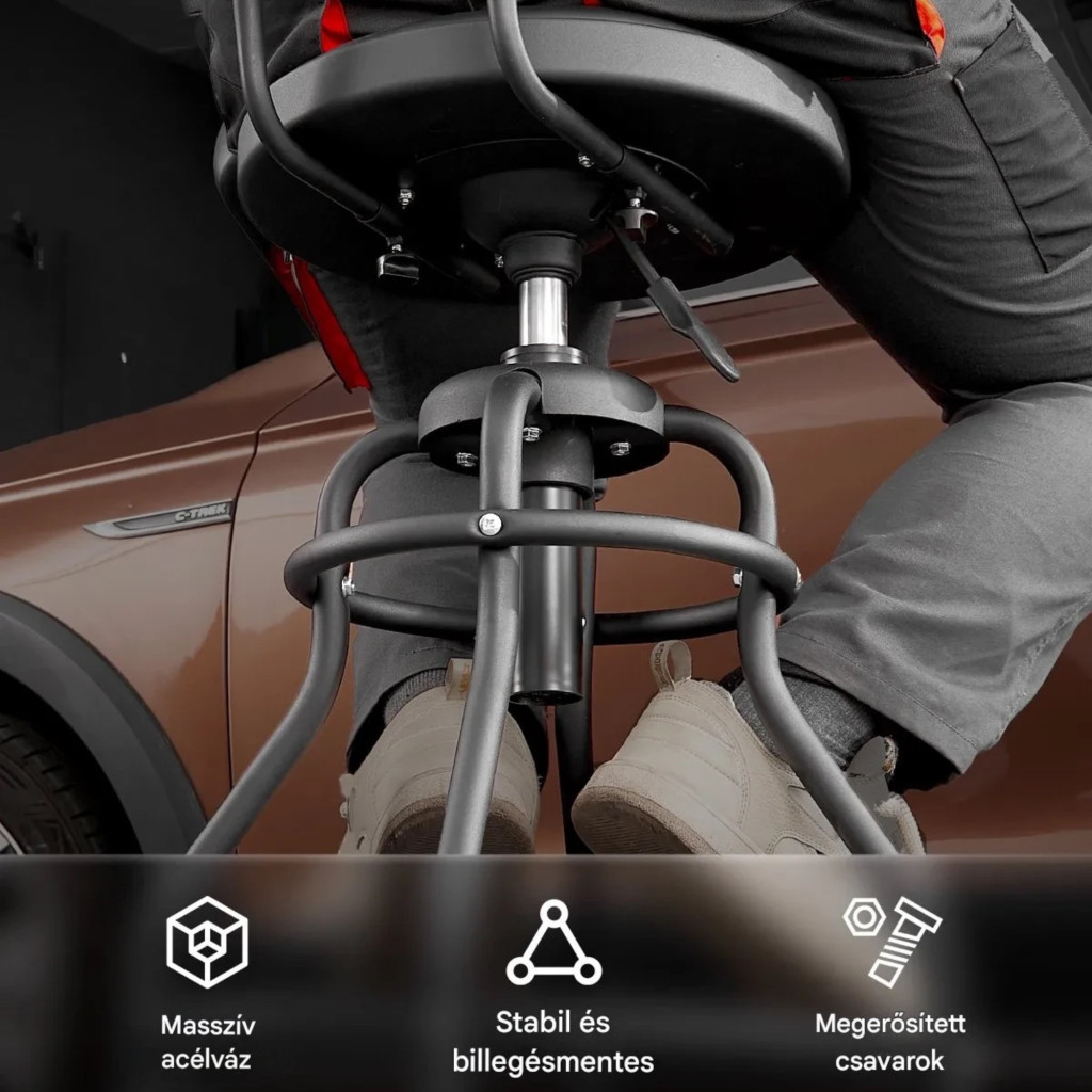 A műhelyszék acél vázzal készült, amely hosszú távú megbízhatóságot garantál:
