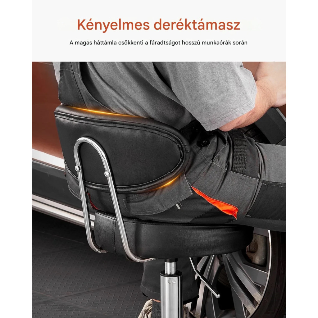 A gurulós szerelőszék maximális mobilitást biztosít: