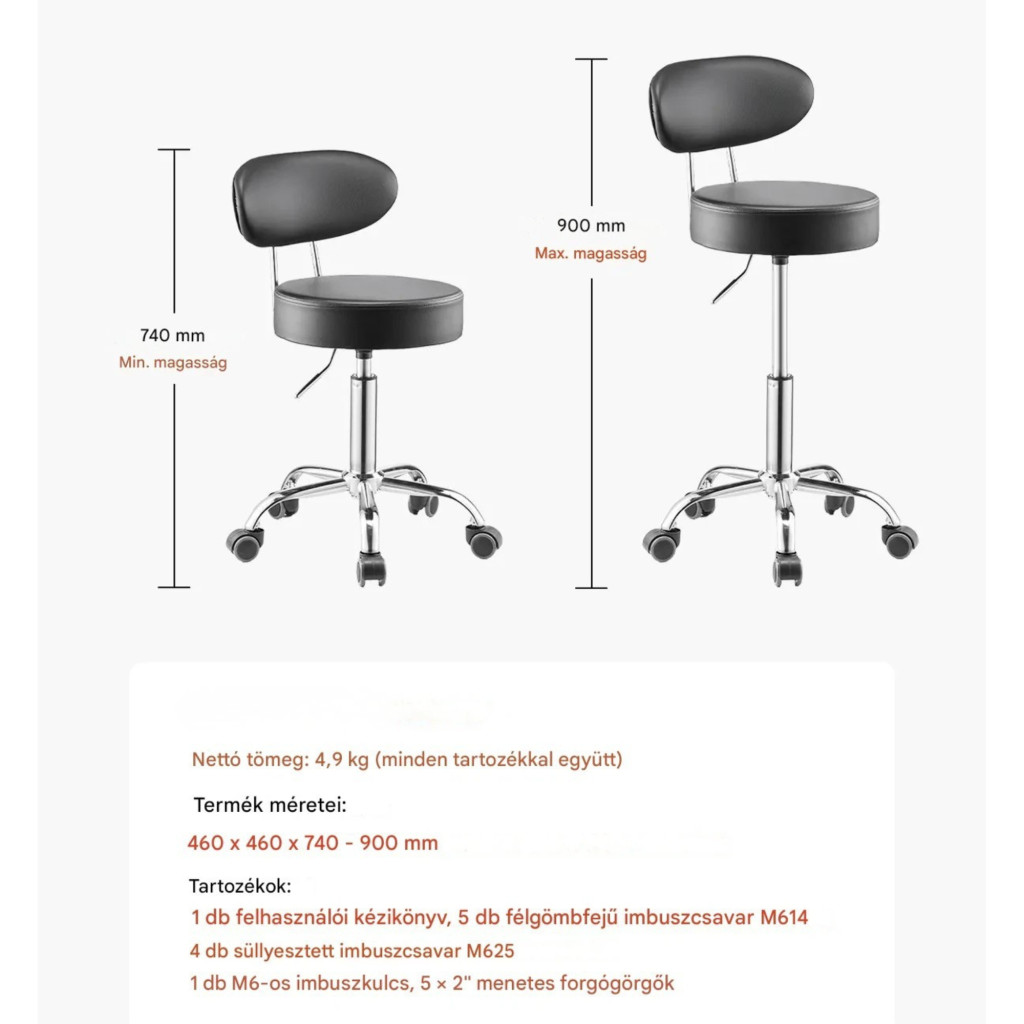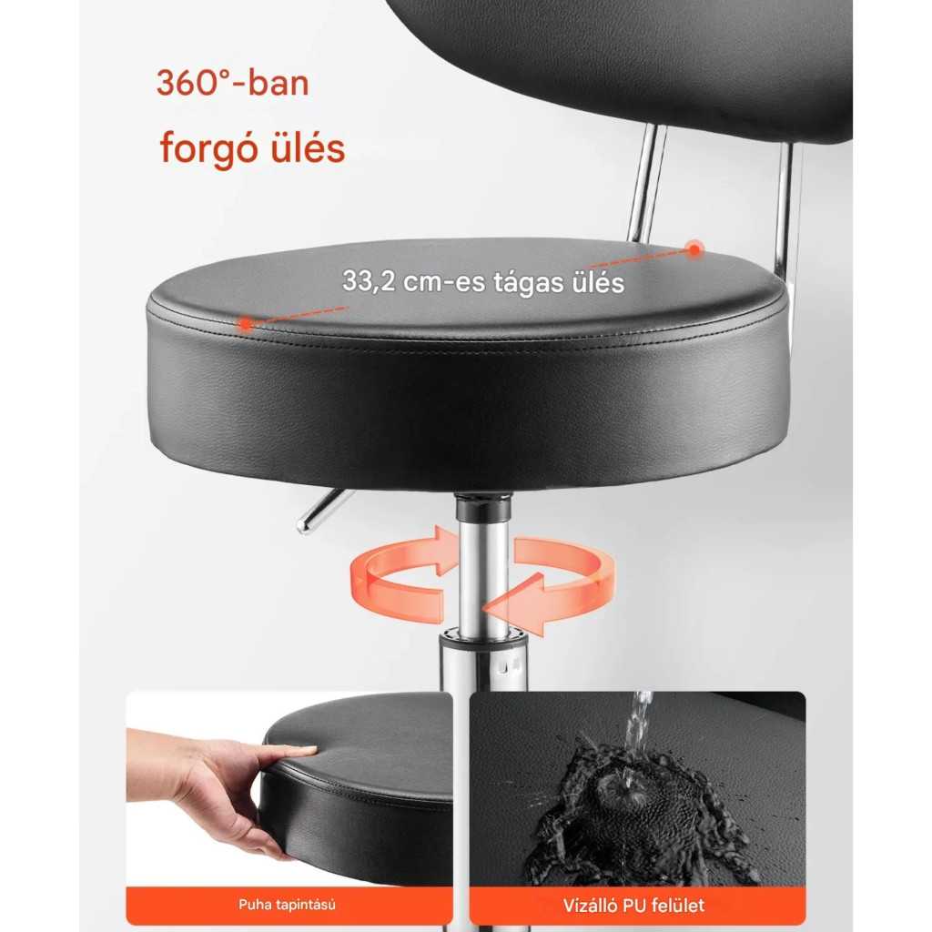 Funkciók: 360° forgás, magasságállítás, háttámla