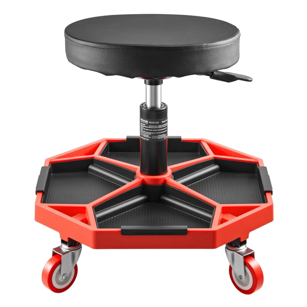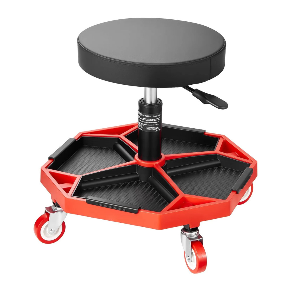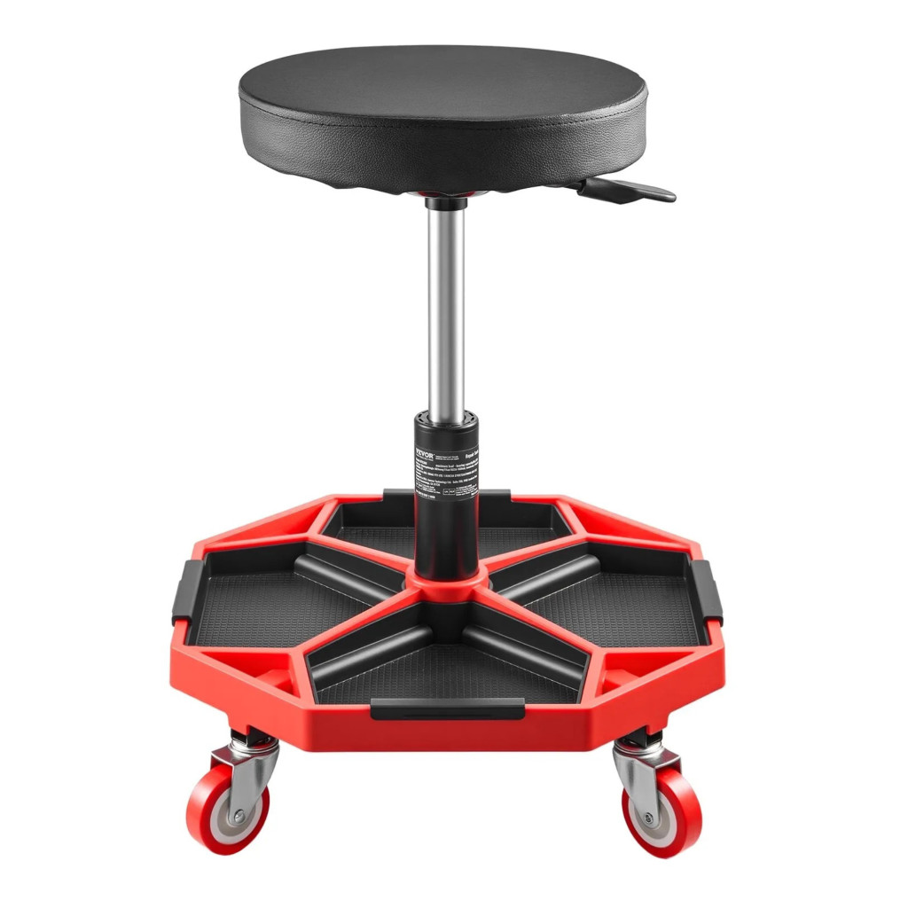 Gurulós műhelyszék szerszámtárolóval 136 kg teherbírás, állítható magasság fekete-piros