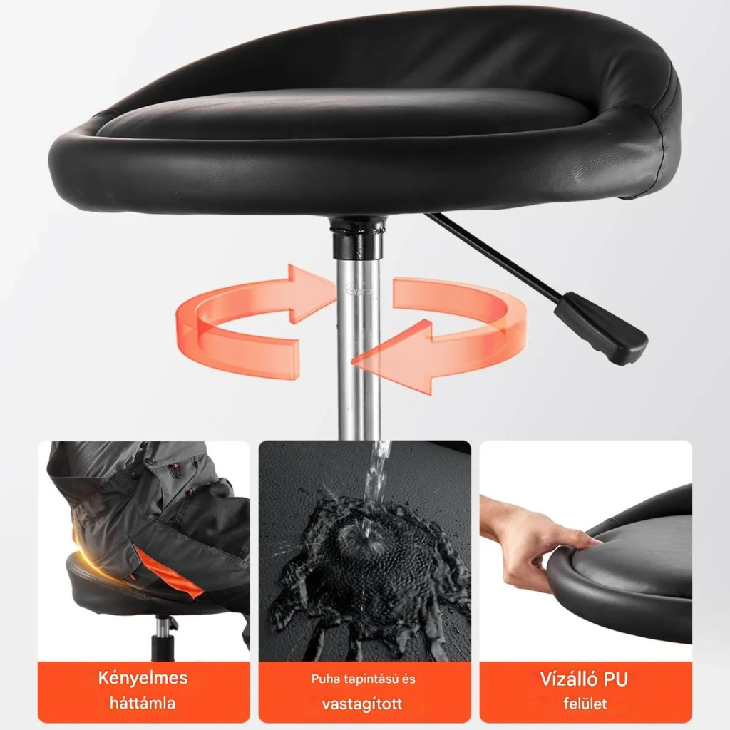 Gurulós műhelyszék állítható magasságú 136 kg teherbírás 360°-ban forgatható és párnázott műhelyszék