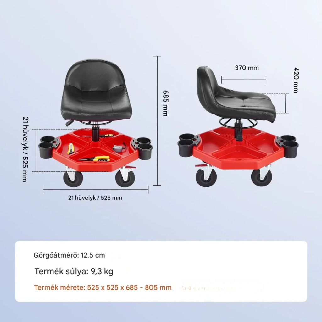 Az állítható magasságú gurulós műhelyszék háttámlával ideális megoldás, ha Ön a kényelmet és a hatékonyságot szeretné ötvözni. A stabil felépítés, a praktikus tárolás és a kiváló mobilitás garantálja, hogy minden munkafolyamat gördülékenyebbé válik.