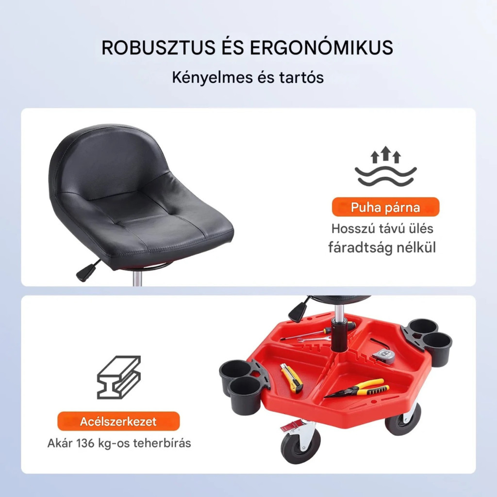 A gurulós szerelőszék kiváló mobilitást biztosít: