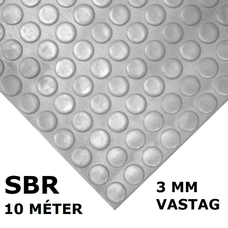 SBR pöttyös gumiszőnyeg 120 cm széles 10 méter hosszú 3 mm vastag szürke tekercs buborék metrómintás