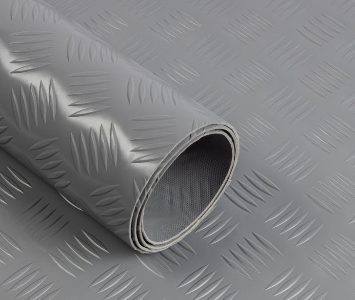 Csúszásgátló színes gumiszőnyeg PVC alapú műanyag szőnyeg szürke 2 mm vastagság 1200 mm széles tekercs gyémánt mintás