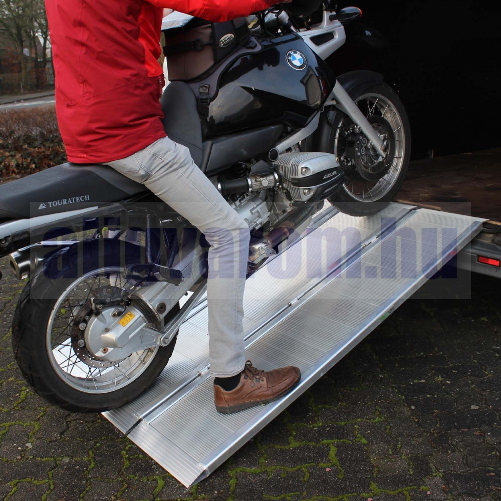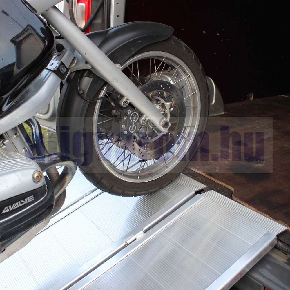 114 cm széles ahhoz, hogy a rakodó és a motorkerékpár is biztonságosan egy magasságban legyen, így a termék tökéletes motorkerékpárok és mopedek rakodásához.