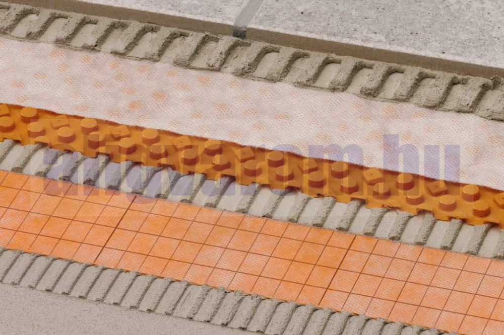 Ott használjuk, ahol különösen ügyelni kell, hogy a legkevesebb víz se maradhasson a burkolat alatt. Az esetleg bejutó vízet biztonsággal elvezeti, emelett feszültségmentesítő, repedésáthidaló lemezként is szolgál.