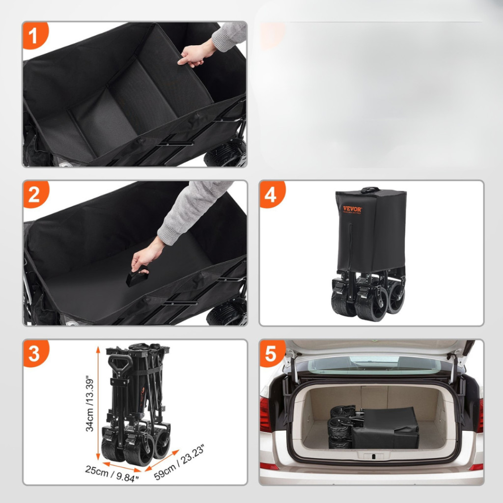 Ez az összecsukható szállítókocsi valóban sokoldalú megoldást kínál a kültéri szállítási feladatokra. Használata egyszerű, nincs szükség összeszerelésre, így rögtön használatba vehető. A kompakt összecsukható kialakításnakköszönhetően kis helyen is elfér, legyen szó autó csomagtartójáról vagy szekrényről.