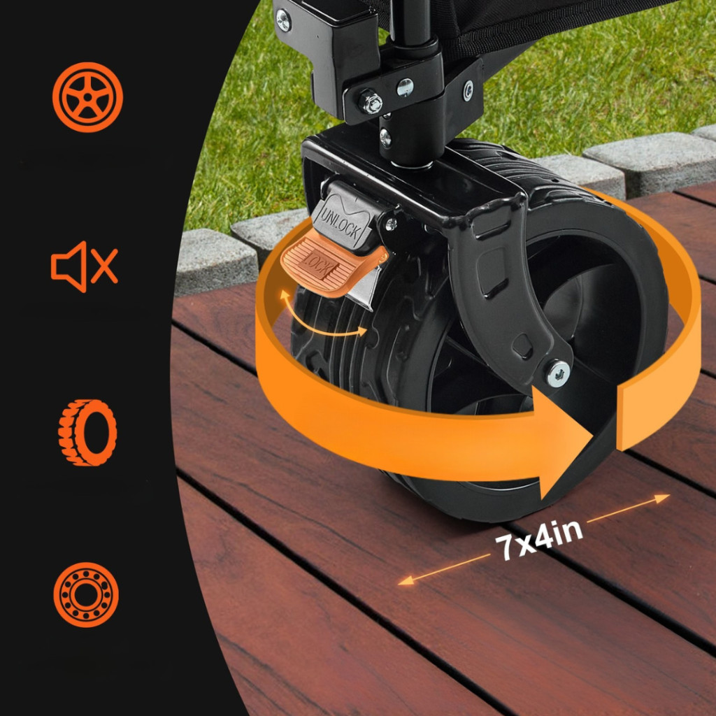 Ez a összecsukható strand- és kerti kocsi ideális választás minden olyan helyzetre, amikor mobilitásra, nagy pakolótérre és megbízható teherbírásra van szüksége. A könnyű összeállítás, az ergonomikus fogantyú, valamint a kompakt tárolhatóság biztosítja, hogy használat után minimális helyet foglaljon, mégis minden terepen helyt álljon.