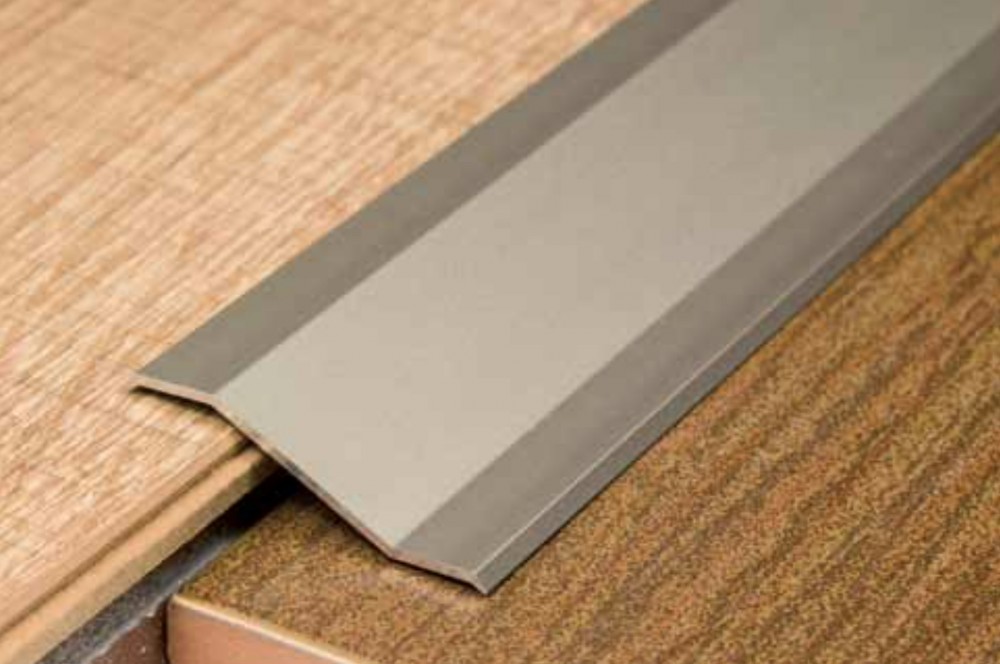 Néha nem sikerül két burkolatnak találkozni. Új lamináltlapot rakunk le, vagy magasabb lesz a padlólap, és a találkozás bajos. Kisebb szintkülönbséget elvisz a hagyományos, domború burkolatváltó, a nagyobb különbséghez már kell valami profibb, olyan, mint ez a profil. 7-12 mm magasság különbséget tud áthidalni elegánsan.