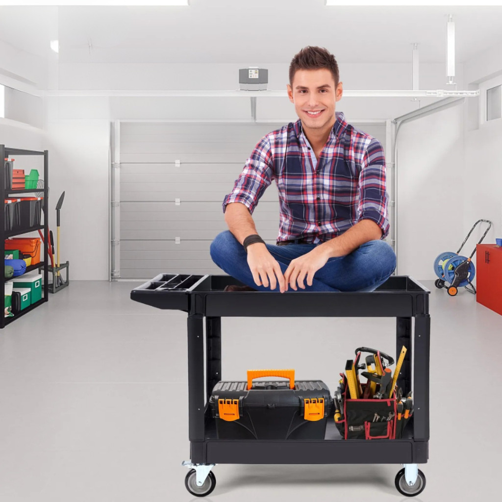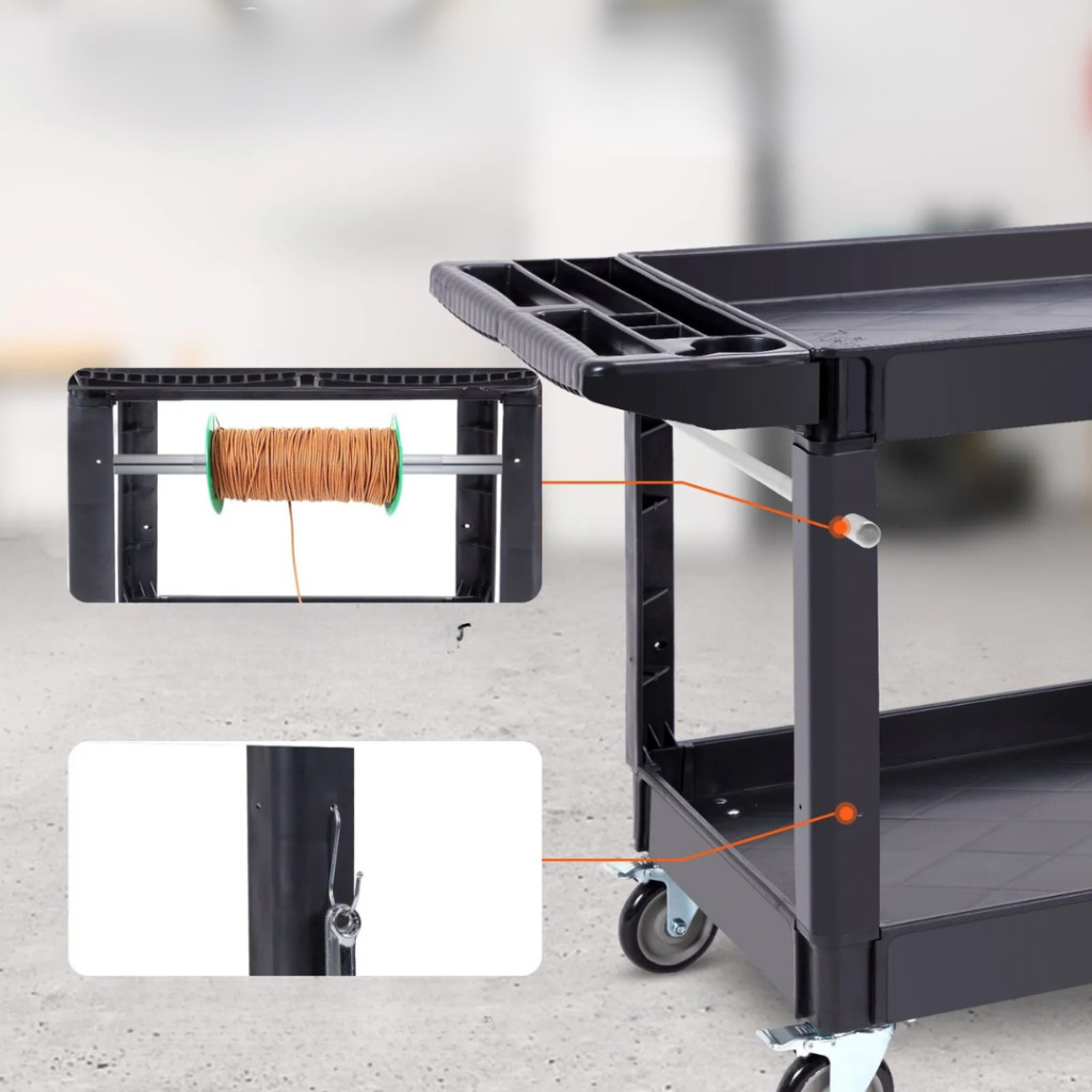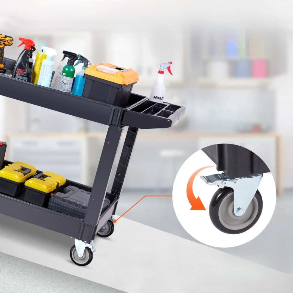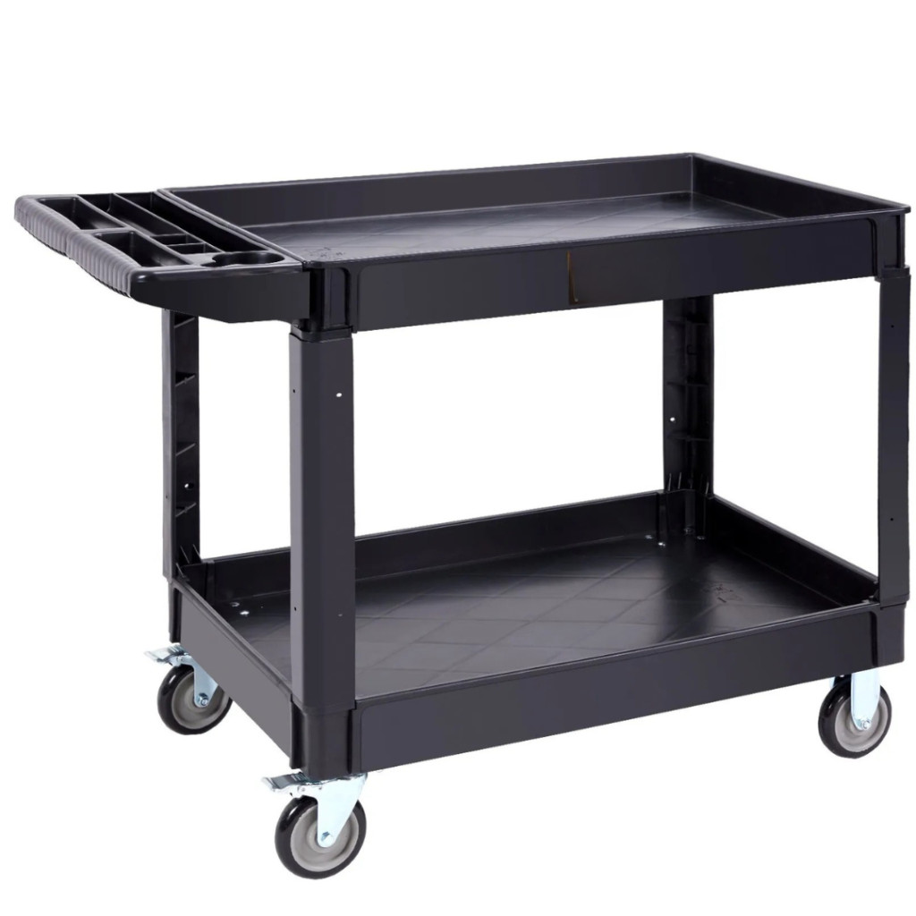 2 szintes szervizkocsi 249 kg teherbírású PP anyagból, fékezhető kerekekkel kiszolgáló kocsi 116x65x85cm műhelykocsi