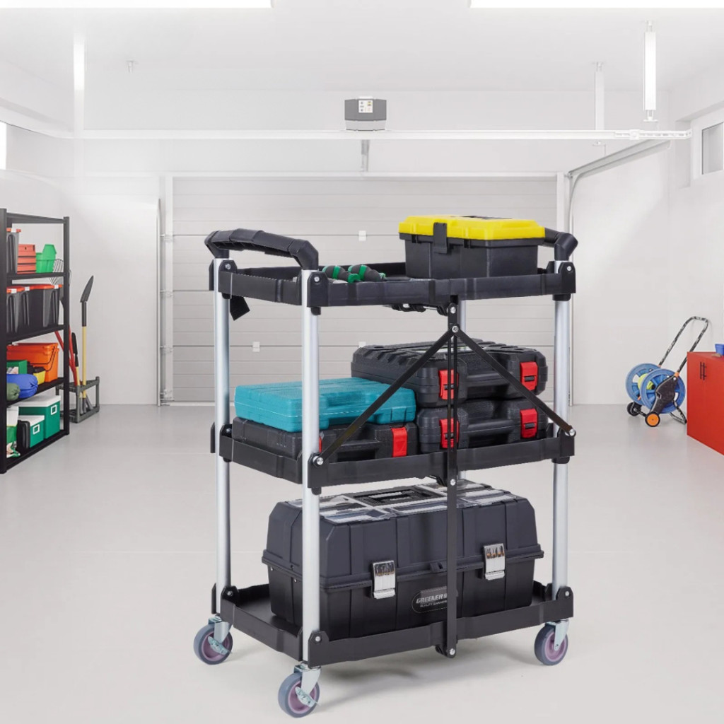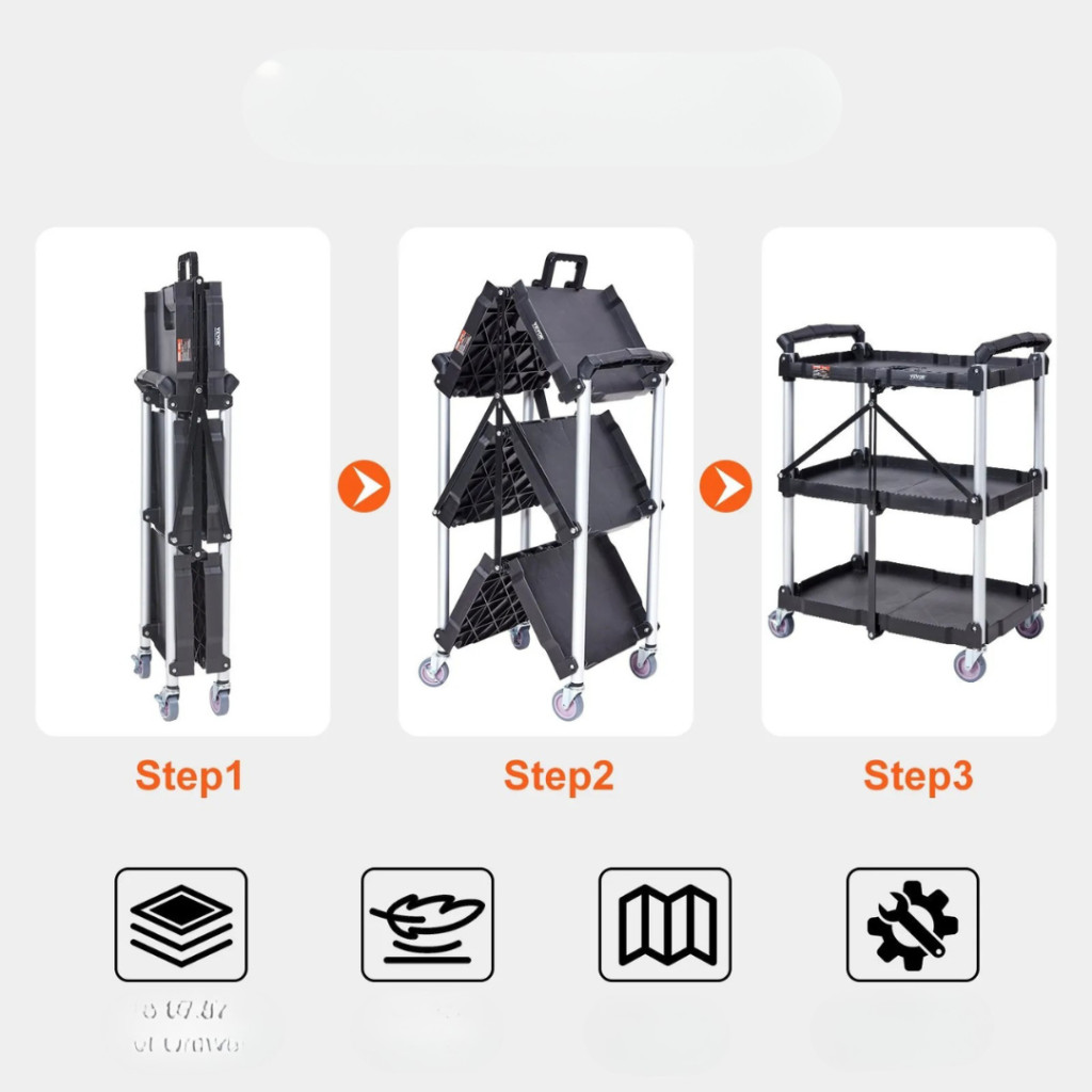 Ez a 3 szintes összecsukható szervizkocsi ideális választás mindazoknak, akik helytakarékos, mobil és megbízható tárolási és szállítási megoldást keresnek. Legyen szó munkáról vagy otthoni felhasználásról, mindig kéznél lesz a gyors és hatékony rendszerezéshez.