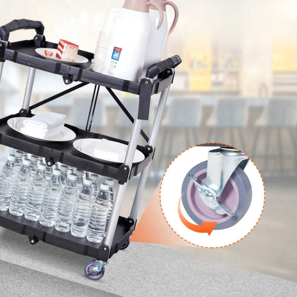 Praktikus, helytakarékos és sokoldalúan használható – ez az összecsukható szervizkocsi ideális megoldás mindazok számára, akiknek fontos a mobilitás és a gyors, kényelmes rendszerezés. A kompakt, mégis strapabíró kocsi otthon, irodában, garázsban vagy akár szállodai és éttermi környezetben is megállja a helyét.