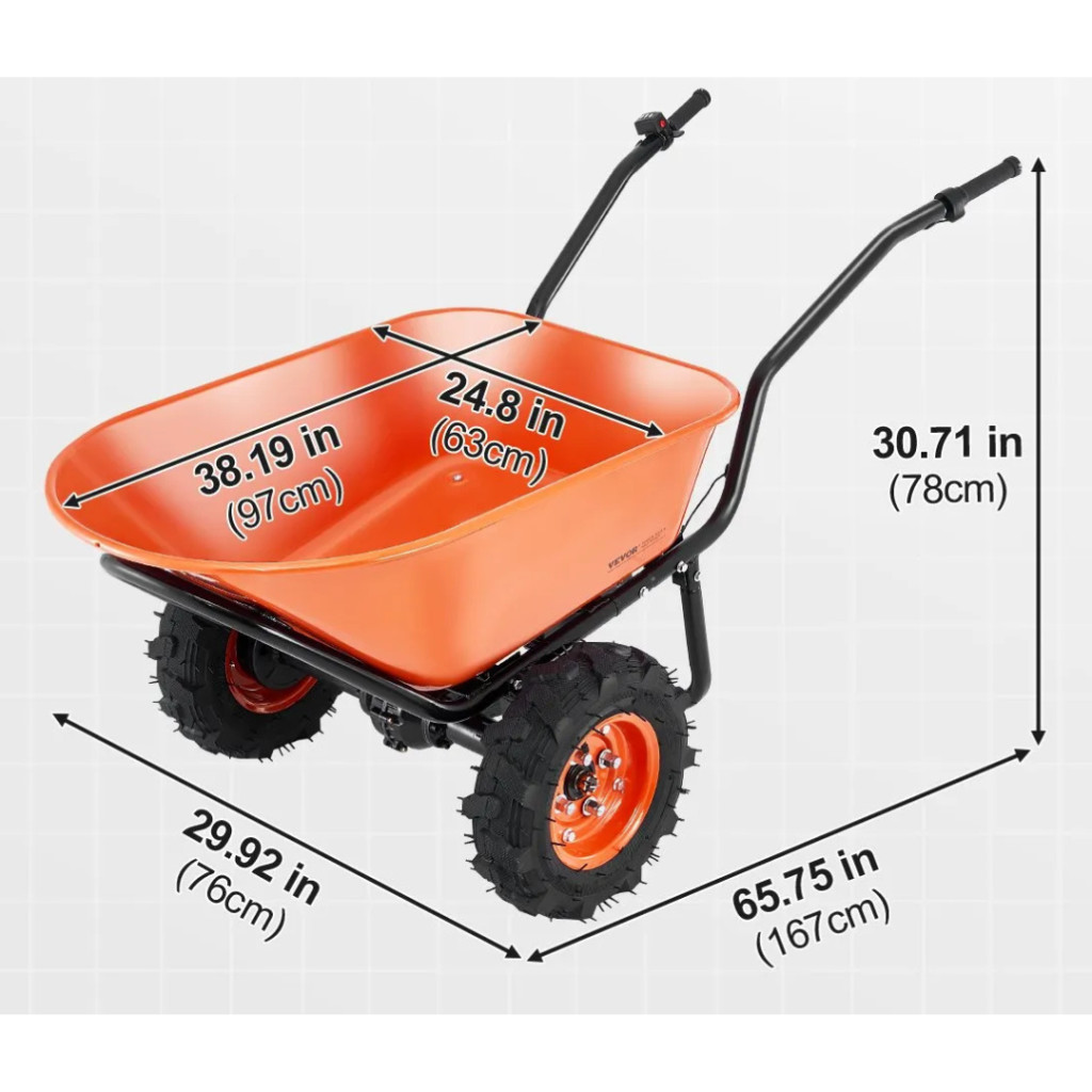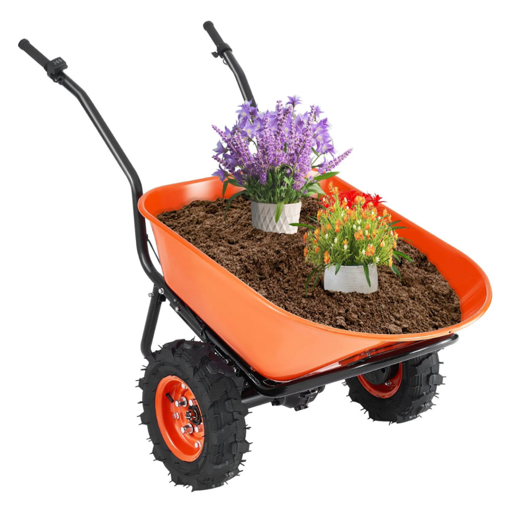 Az elektromos talicska forradalmasítja a nehéz tárgyak mozgatását a kertben, a gazdaságban vagy akár az építkezésen. 500 W teljesítményű motorja lehetővé teszi, hogy könnyedén kezelje a meredek emelkedőket és a nagyobb terheket is, akár 260 kg maximális terhelhetőségig. Legyen szó föld, kavics, tűzifa, termény vagy kerti eszközök szállításáról, ezzel a strapabíró szállítókocsival időt és energiát takaríthat meg.
