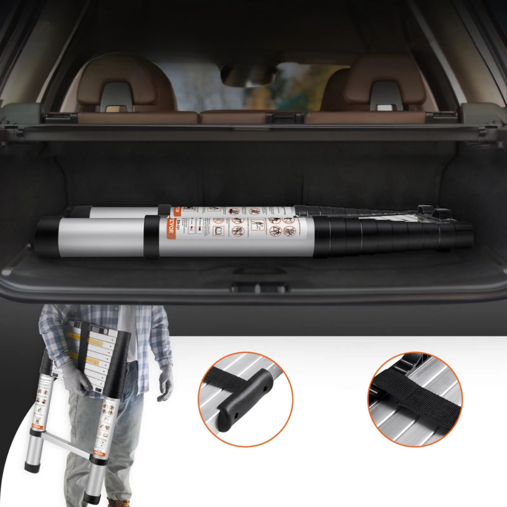 A 3,2 méteres teleszkópos létra ideális háztartási és kültéri feladatokra: falfestéshez, dekorációhoz, villanykörték cseréjéhez, kisebb szerelési munkákhoz, faápoláshoz vagy akár lakóautókhoz is. Egy valódi praktikus segítőtárs a mindennapokra.