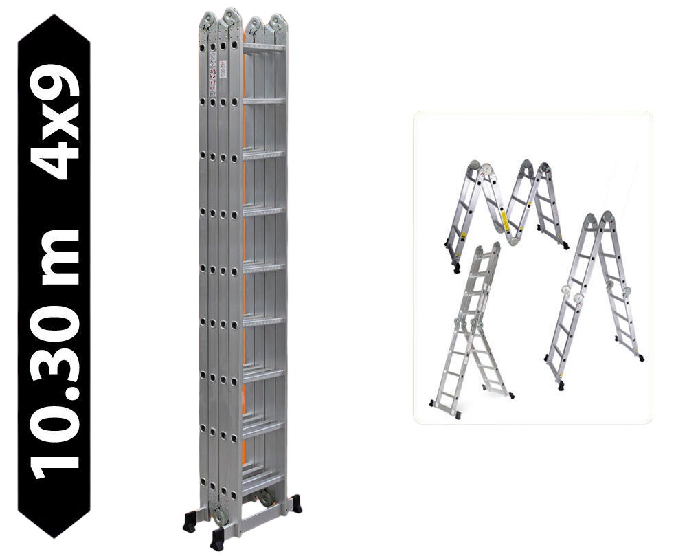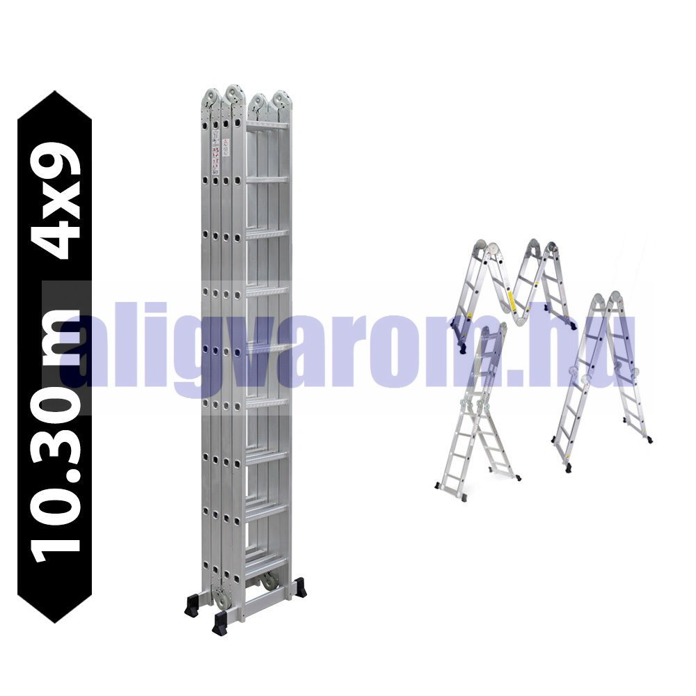 Létra többfunkciós csuklós 10.3 méter magas 4 részes összehajtható, összecsukható, 4x9 létrafok Lépcsőlétra összecsukva csak 266 cm