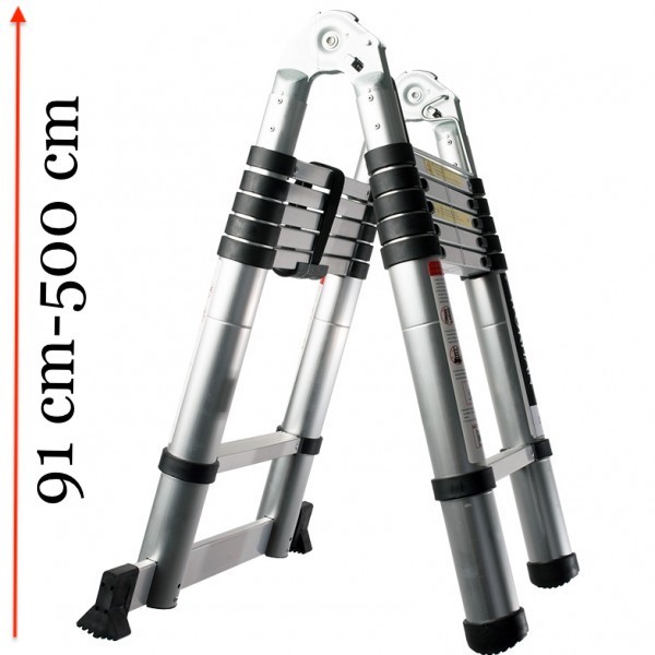 Toms teleszkópos, alumínium, kétágú létra kinyitva 500 cm, összecsukva 91 cm magas. Multifunkciós létra