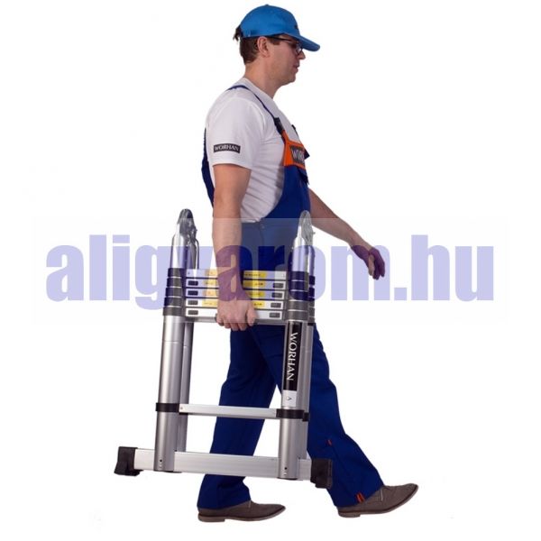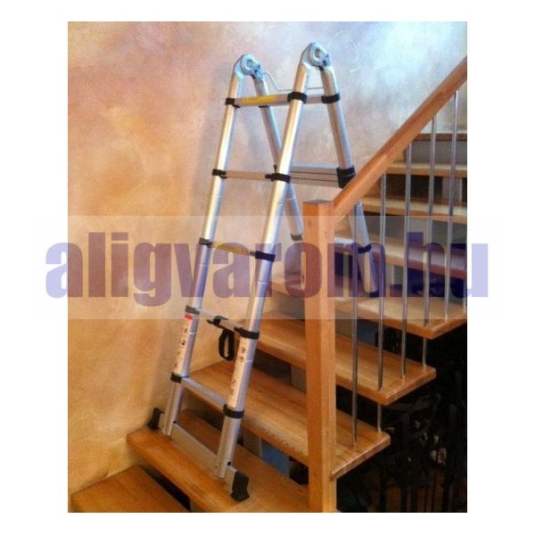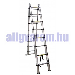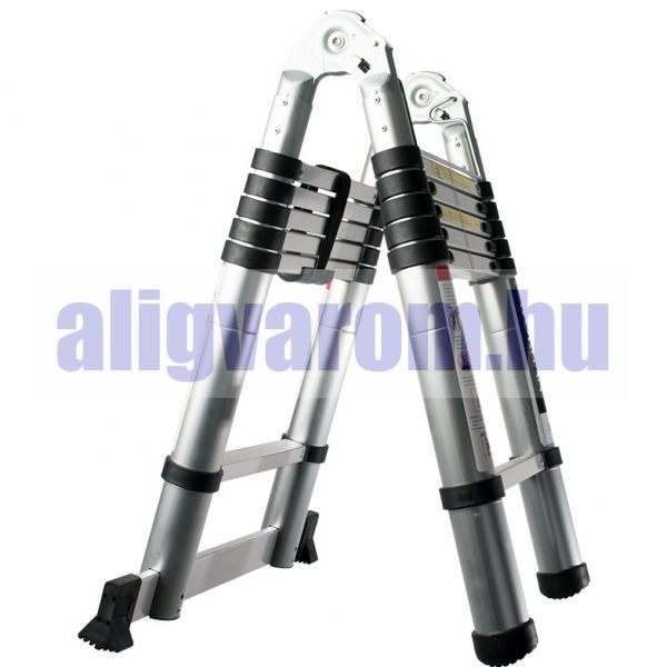 Teleszkópos létra kétágú, de egyágúvá kinyitható, állítható hosszú szárakkal.