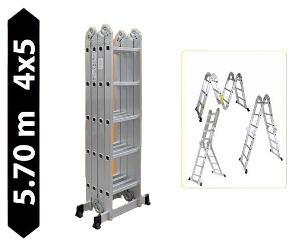 Multifunkciós létra 5,7 méter magas 4 részes összehajtható, összecsukható, 4x5 létrafok
