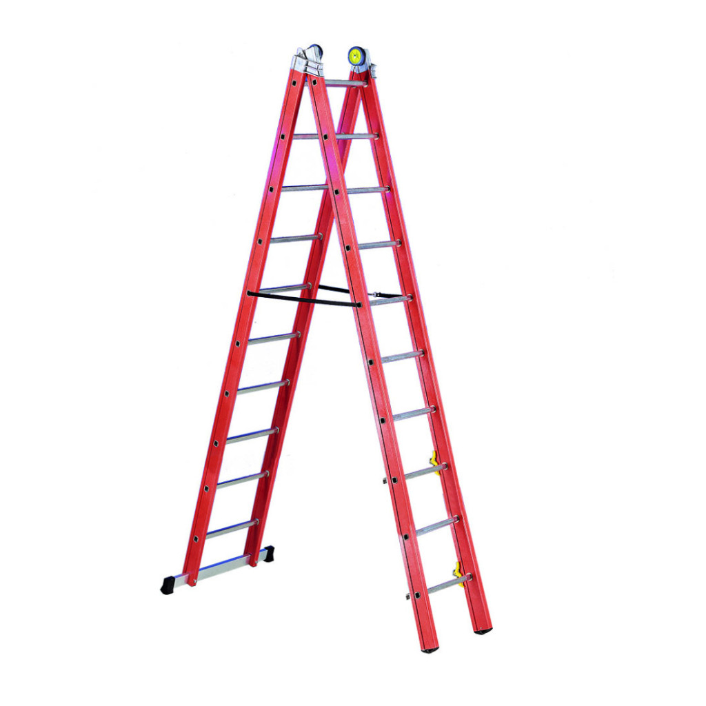 Üvegszálas szigetelt létra, kombinálható kétrészes 2x10 fok, 3m magas, csúszókerekekkel