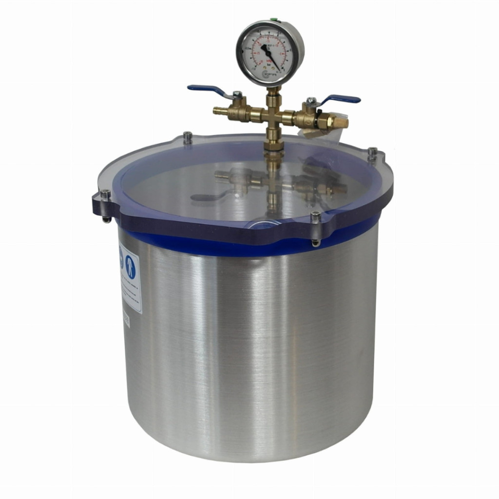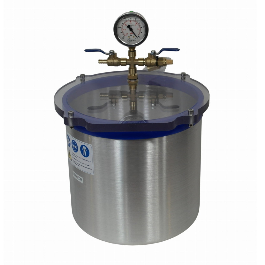 Vákuumtartály, vákuumkamra 12,5 literes alumínium, polikarbonát fedő