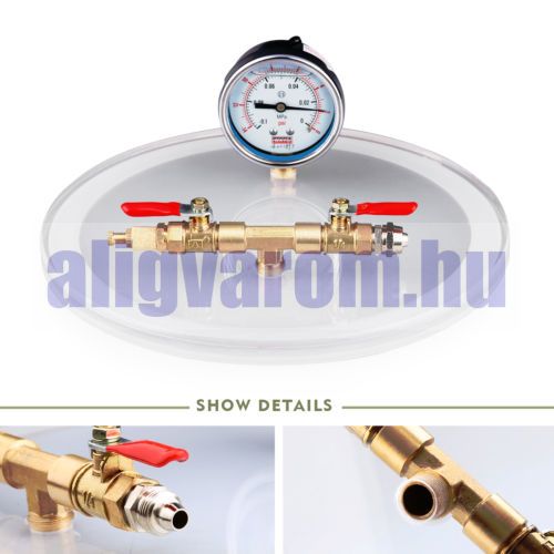 Rozsdamentes vákuumkamra akril fedővel, nyomásmérő órával