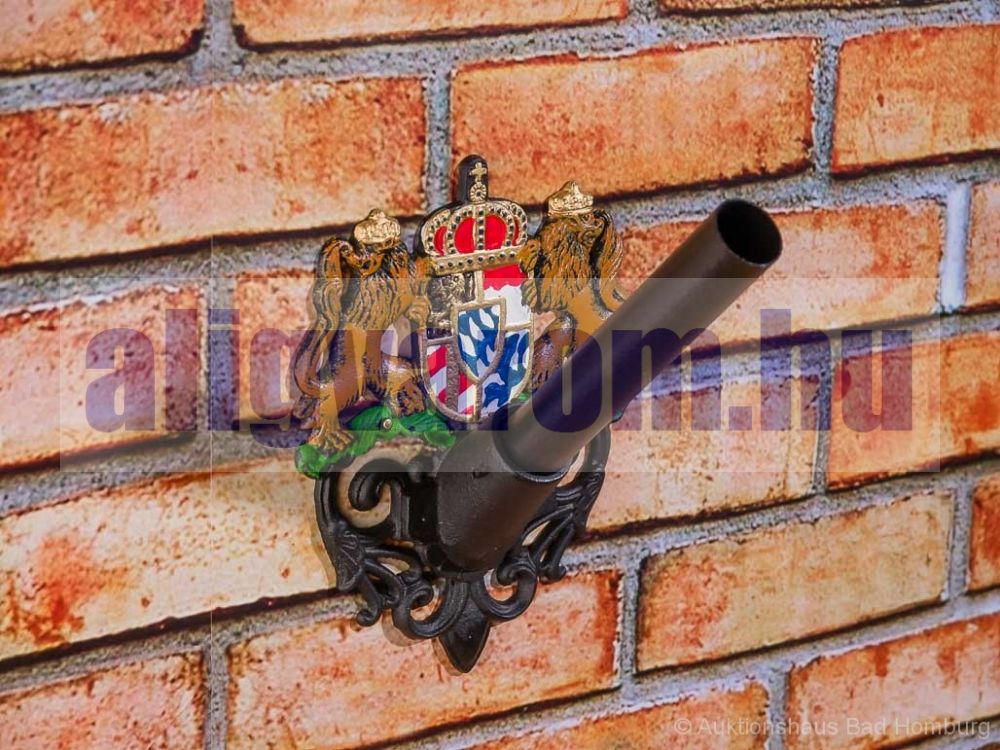 Díszes zászlórúd tartó  öntöttvas fali zászlótartó koronás díszitéssel