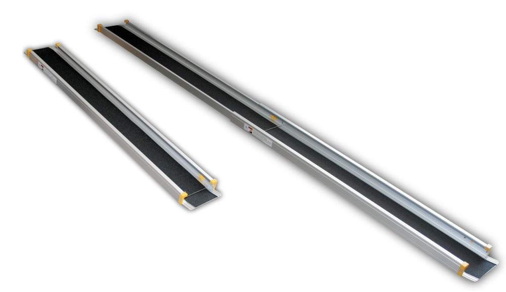 Teleszkópos rámpa 152-274 cm 1 db széthúzható összetolható teleszkópos tolókocsi/kiskocsi rámpa 100 kg/db 200 kg/pár teherbírás. Jó ár - érték arány.