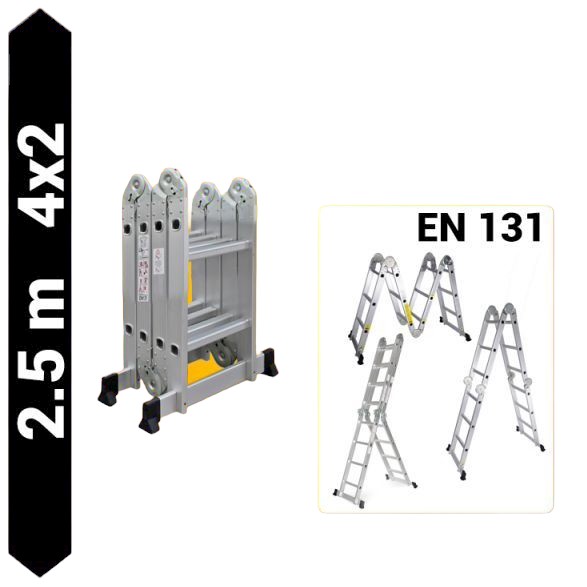 Többfunkciós csuklós létra 2,5 méter magas 4 részes összehajtható, összecsukható, 4x2 létrafok. Összecsukva csak 72 cm hosszú!