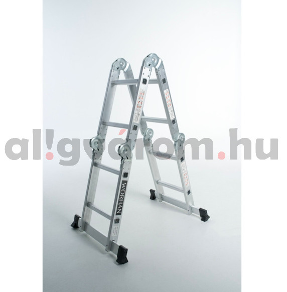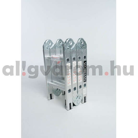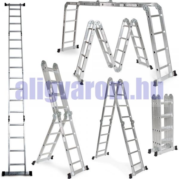 Négyrészes, multifunkcionálisan használható csuklós létra,könnyen kinyitható, biztonságosan rögzíthető és könnyen összecsukható