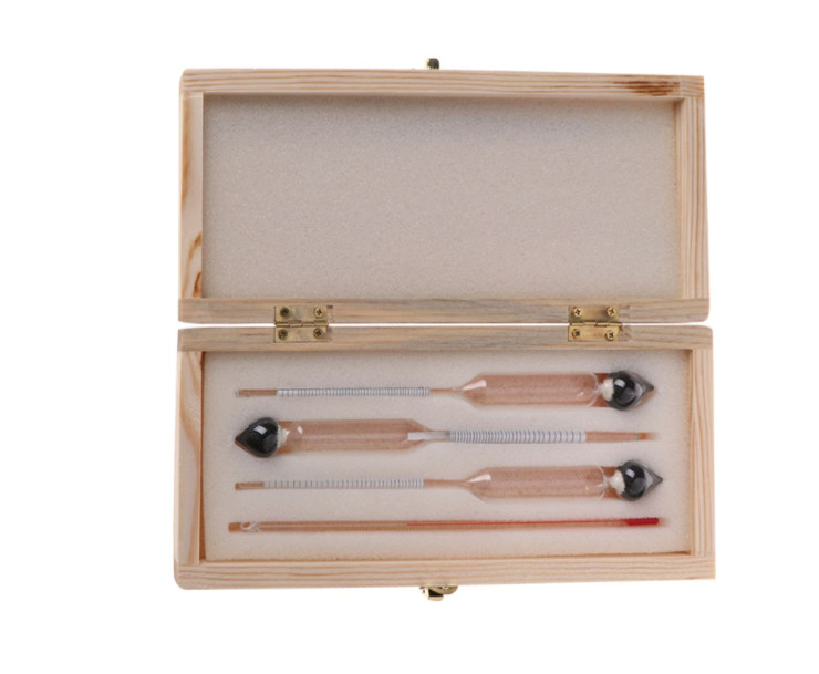 Professzionális és pontos alkoholmérő készlet, amely tartalmaz egy 0–40%-os alkoholmérőt, egy 40–70%-os alkoholmérőt és