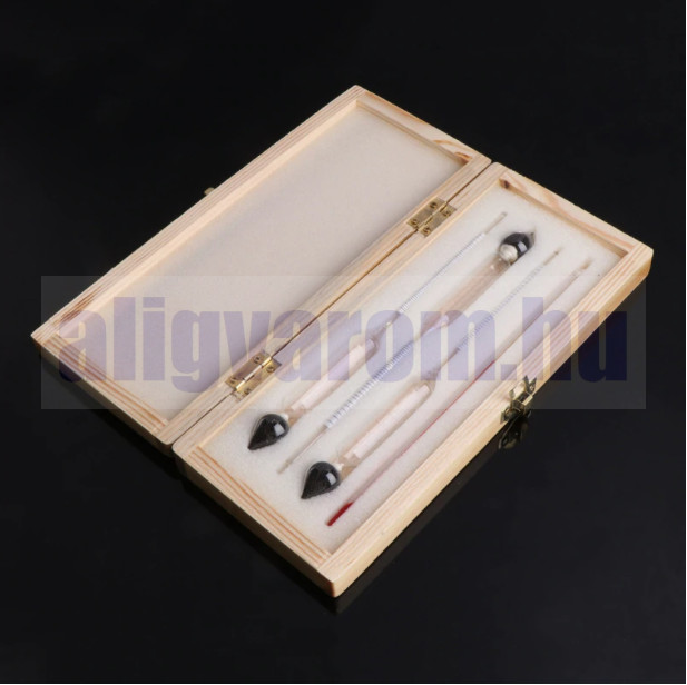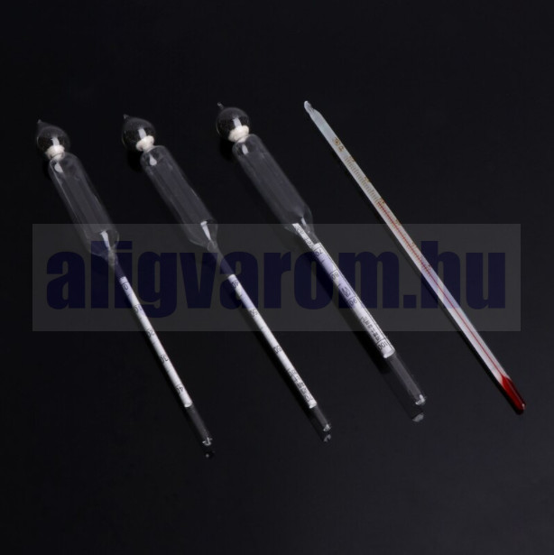 egy 70–100%-os alkoholmérőt, valamint egy hőmérőt.