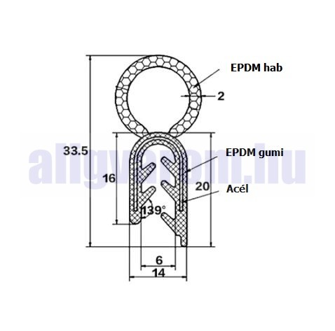 Anyaga: EPDM gumi acélbetéttel, a szigetelő rész EPDM hab.