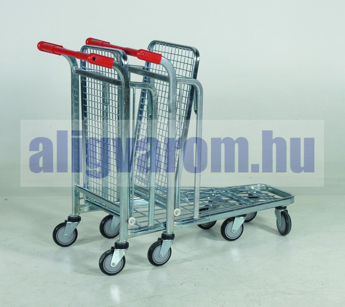 Bevásárlókocsi, kétszintes szállítókocsi, húzható, összetolható  kézikocsi 300 kg teherbírás