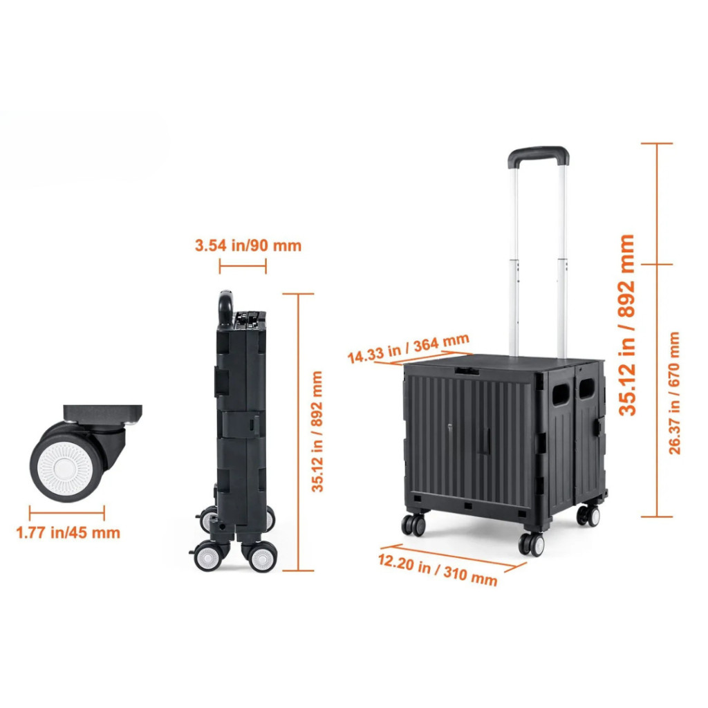 A 24,9 kg / 49,8 kg teherbírású, összecsukható bevásárlókocsi egy kompakt, könnyen hordozható és rendkívül praktikus megoldás mindenki számára, aki szeretné megkönnyíteni a mindennapi cipekedést.