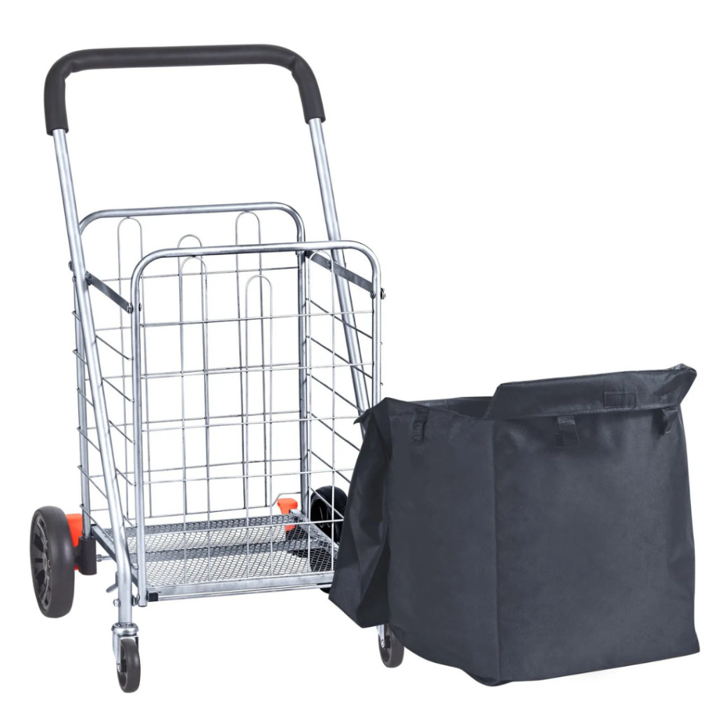 Összecsukható bevásárlókocsi 90 kg teherbírással, erős vázzal és nagy tárolókapacitással