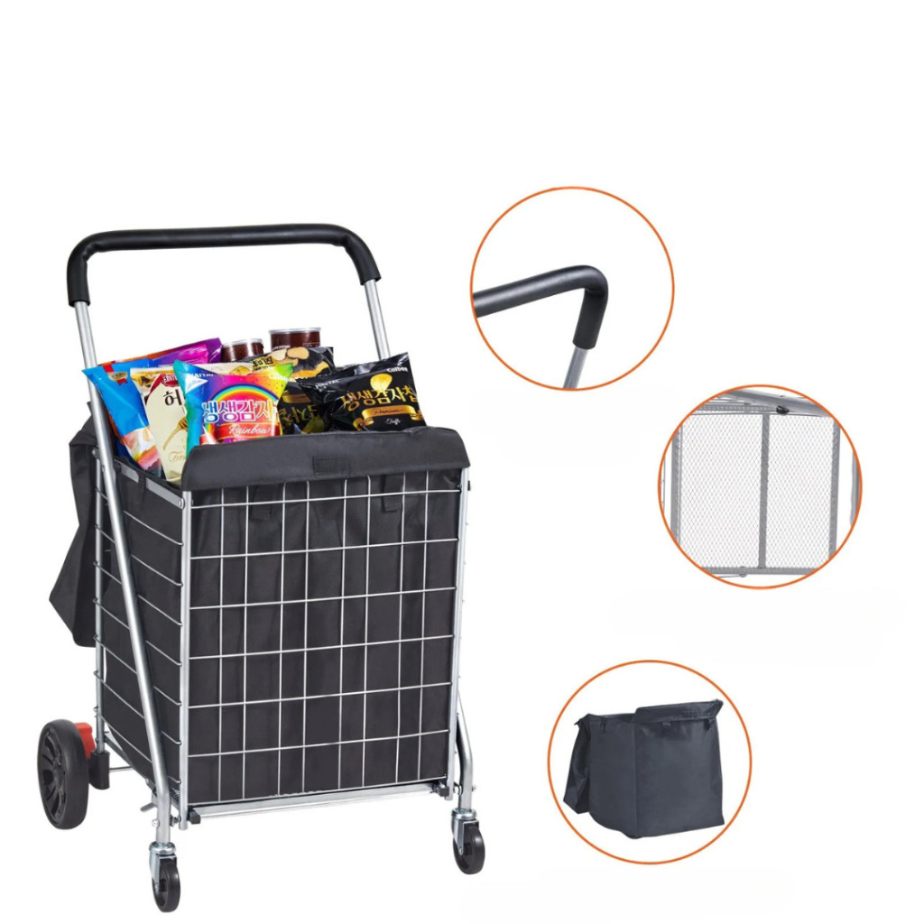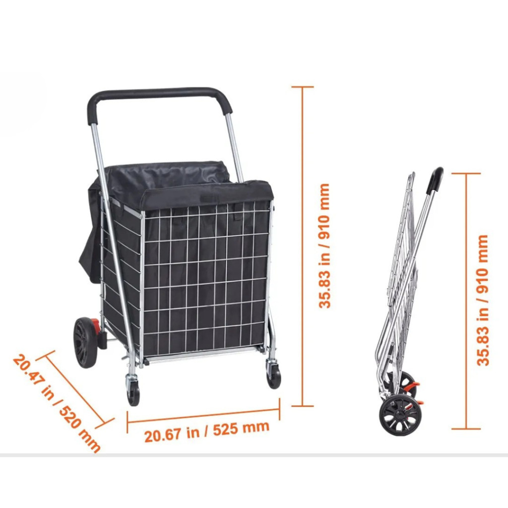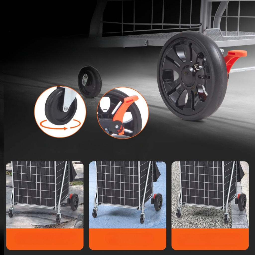 A 90 kg teherbírású, összecsukható bevásárlókocsi a praktikum, a megbízhatóság és a kényelmes használat tökéletes kombinációja. Ha szeretné megkönnyíteni a mindennapi bevásárlást, a mosás vagy egyéb szállítás terheit, akkor ez a kocsi ideális választás az Ön számára.