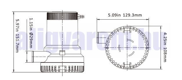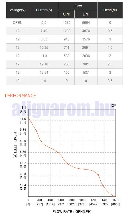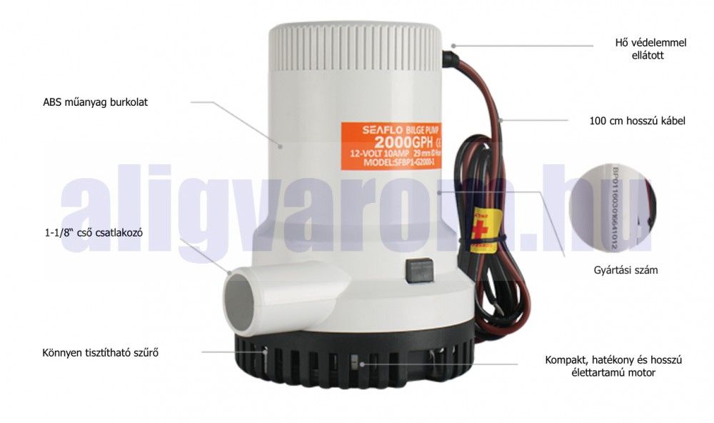 12V 168W búvárszivattyú Seaflo 5900 liter/óra szállítási teljesítmény és 3,6 méter emelési magasság