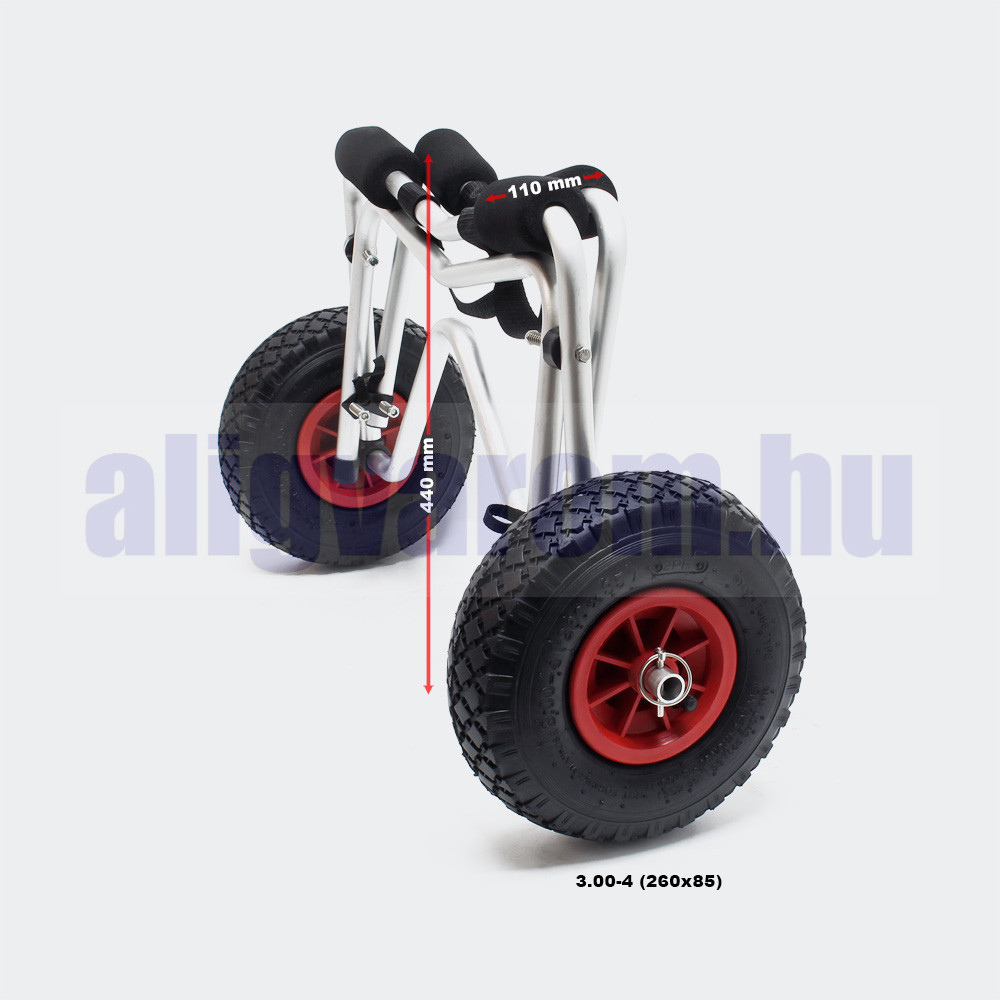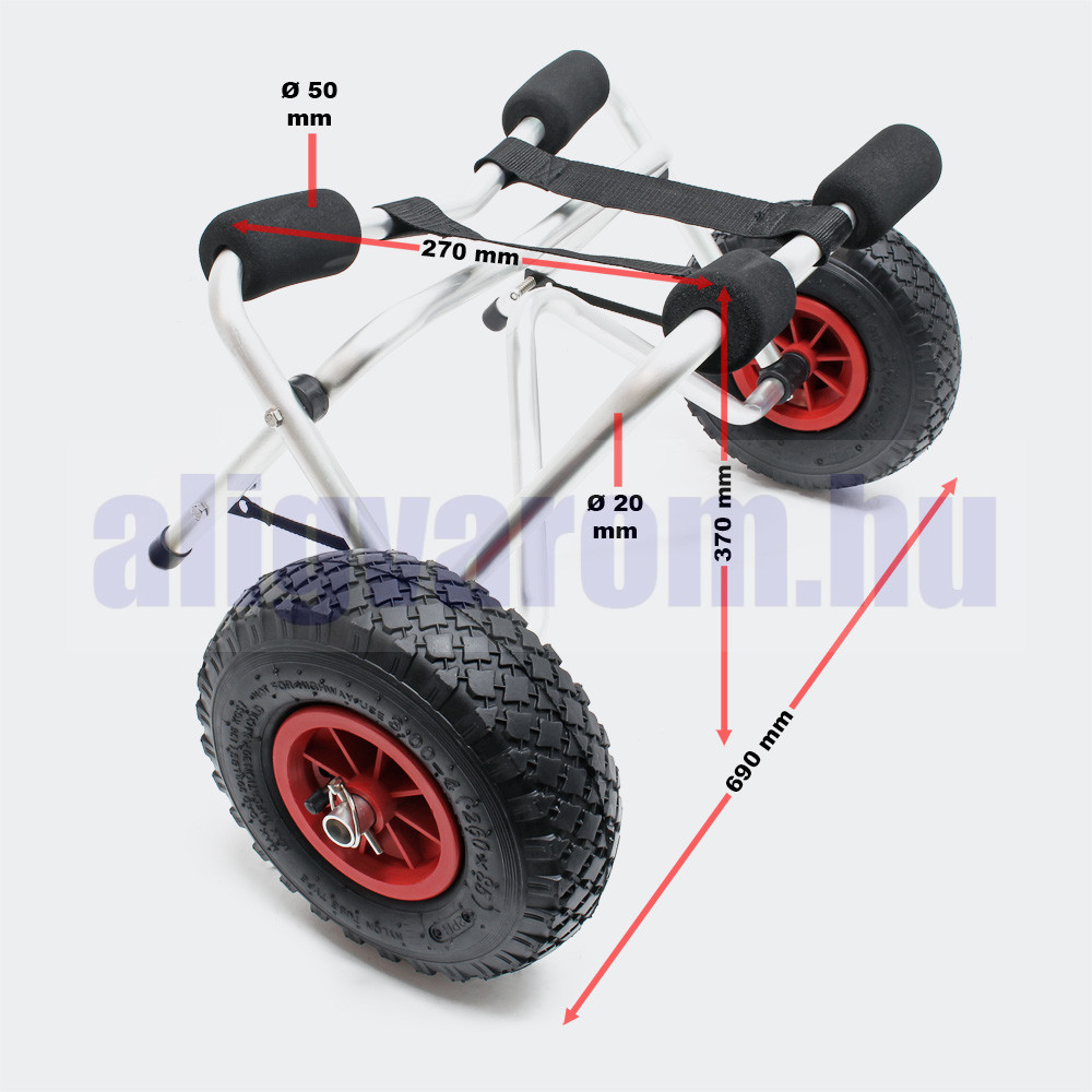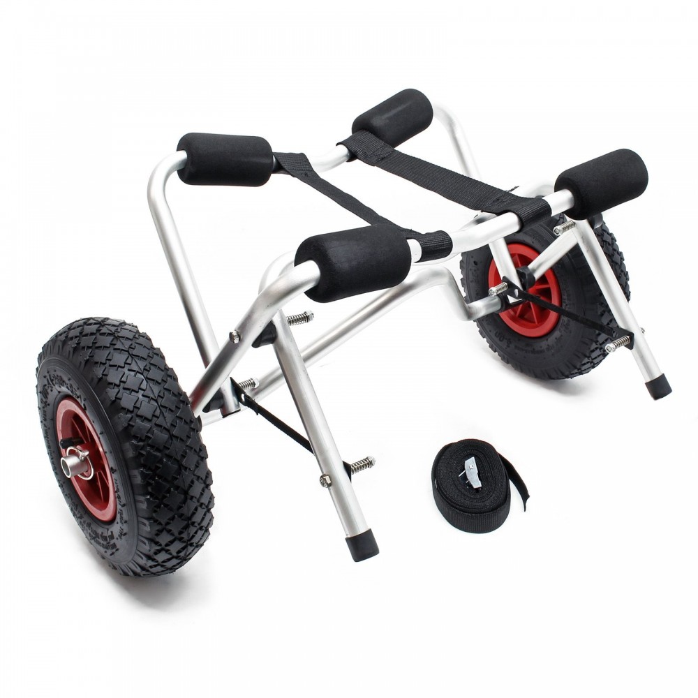 A 68 kg teherbírású, összecsukható alumínium szállítókocsi tökéletes eszköz kajak, kenu vagy kisebb csónak szárazföldi mozgatásához. A masszív, mégis könnyű szerkezetének köszönhetően egyszerre nyújt kiváló stabilitást, kis súlyt és egyszerű kezelhetőséget, így ideális választás minden vízisport-kedvelő számára.